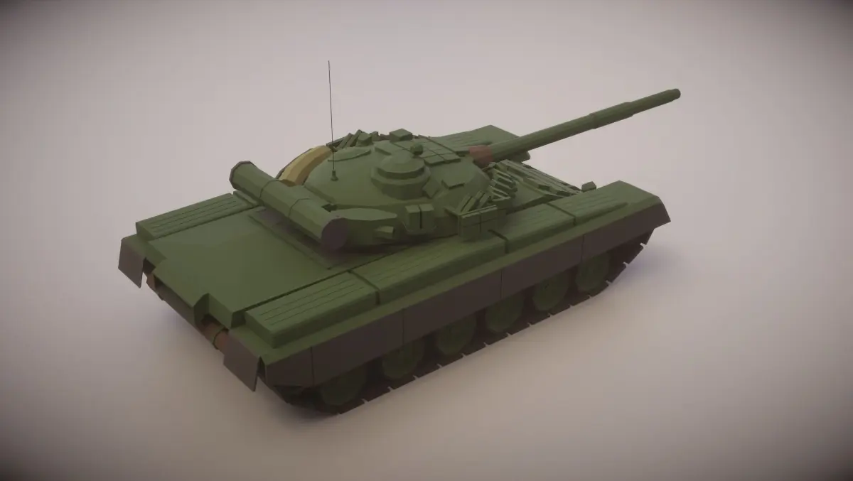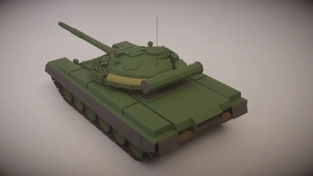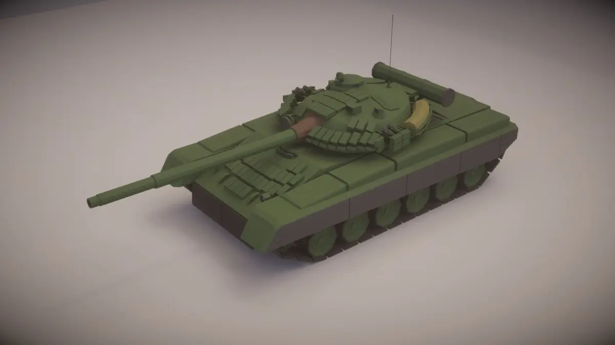 A simple low poly T-80BV Tank with fully movable wheels, turret and gun