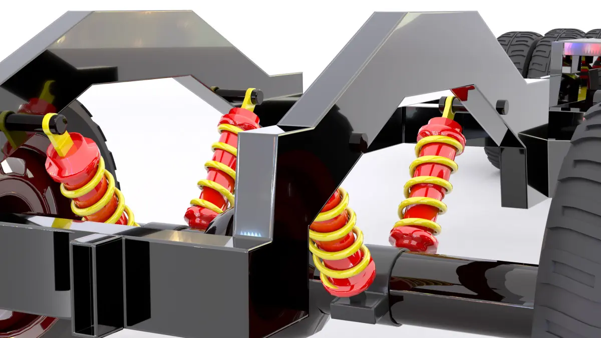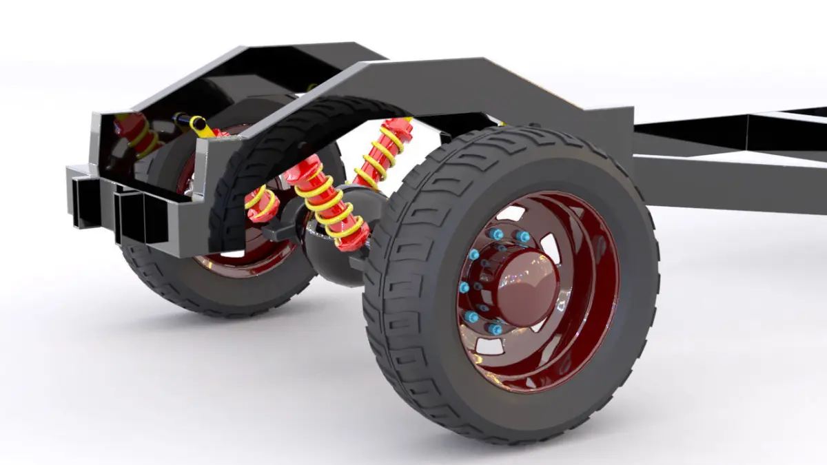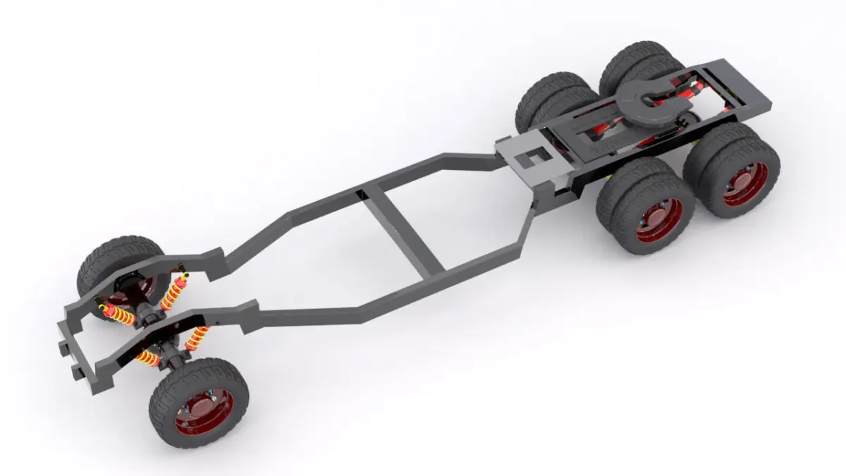 Simple Truck chassis Frame with Springs and wheels Heavy Duty Low poly