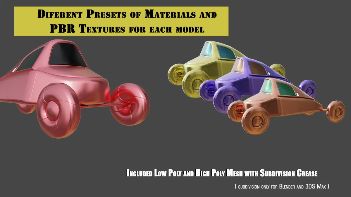 - Comes with low poly and high Poly meshes, 2 Docs ( Blender and 3DSMax 2021/2018), PBR Textures and 4 materials in the doc files