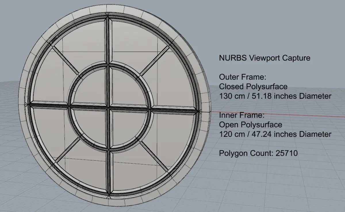 All formats are divided in three basic parts:An outer frame, done as a single CLOSED polysurface, so it can be easily used to boolean or subtract from the wall you mean to place the window in without problems.An Inner frame, done as a single OPEN polysurface, which I hope you'll find perfectly finished to look nice but still very simply done.Glass pieces, which should match perfectly with the inner frame.
