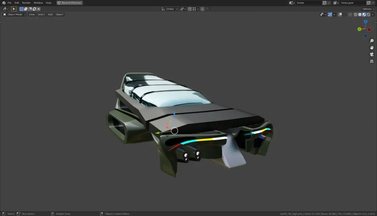 Info:Simplistic and stylized flying car concept. Model is not realistic but can be used as a background for concept art. Easy to use for a game engine with materials applied, no textures needed.