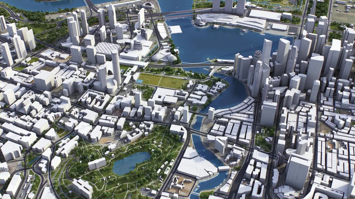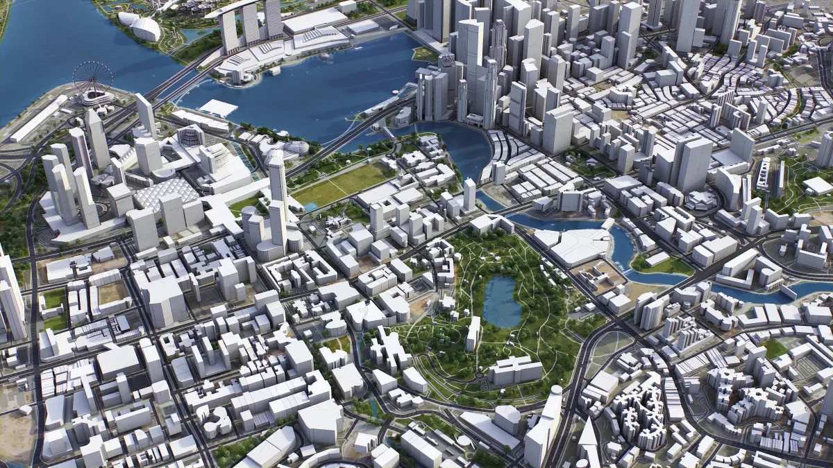 This is exact and accurate to scale 3D city model of Singapore - Johor Bahru Metropolitan area based on GIS data (February 2022)