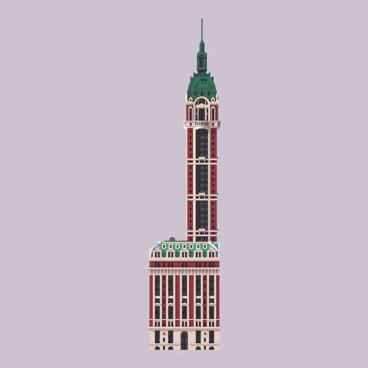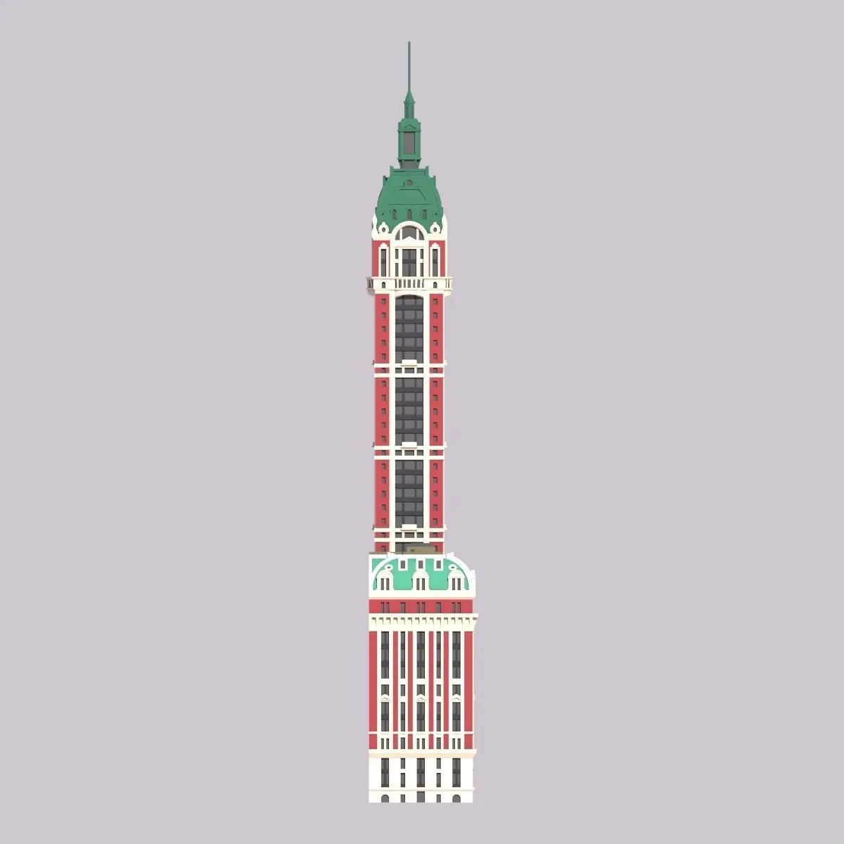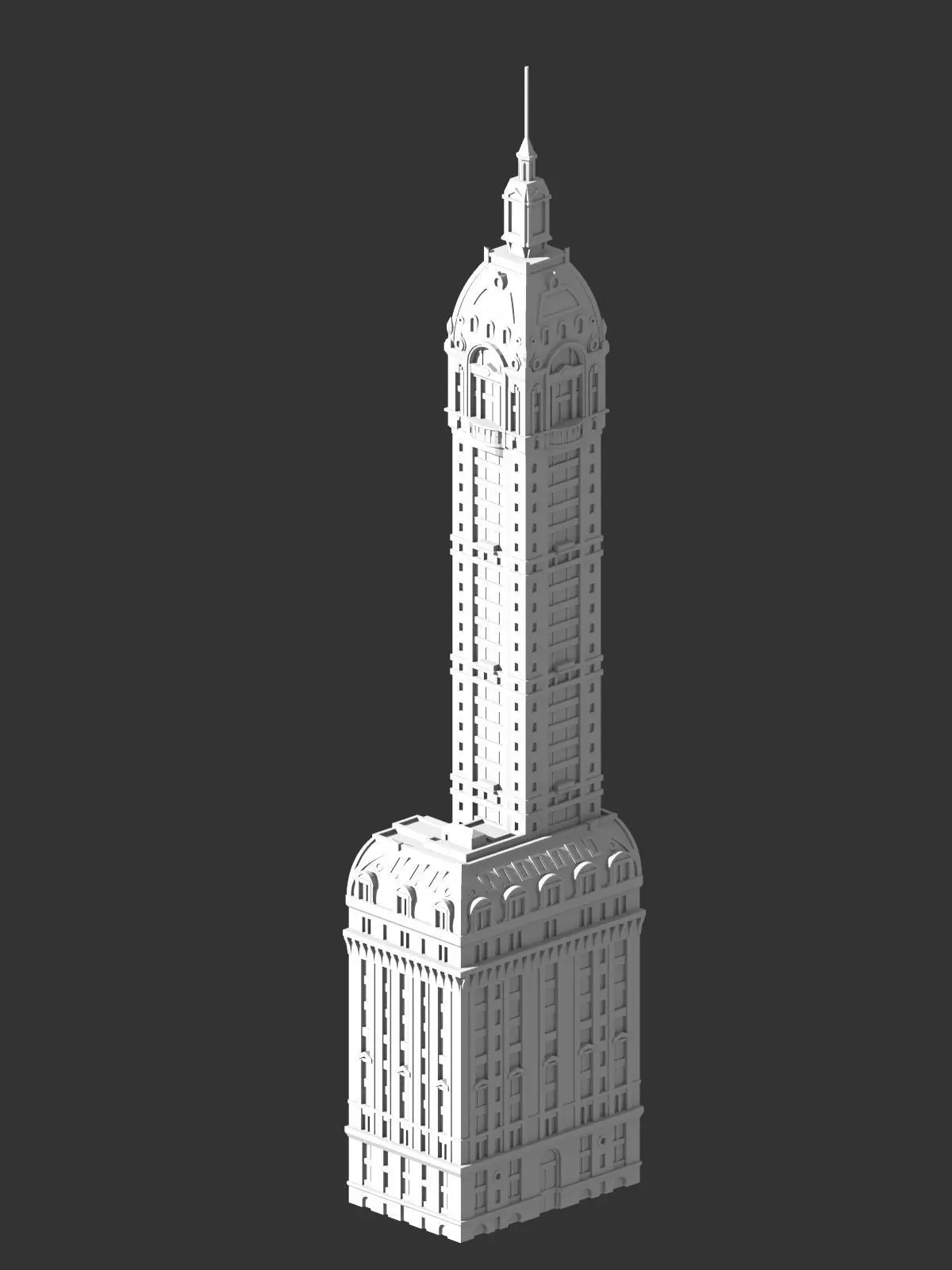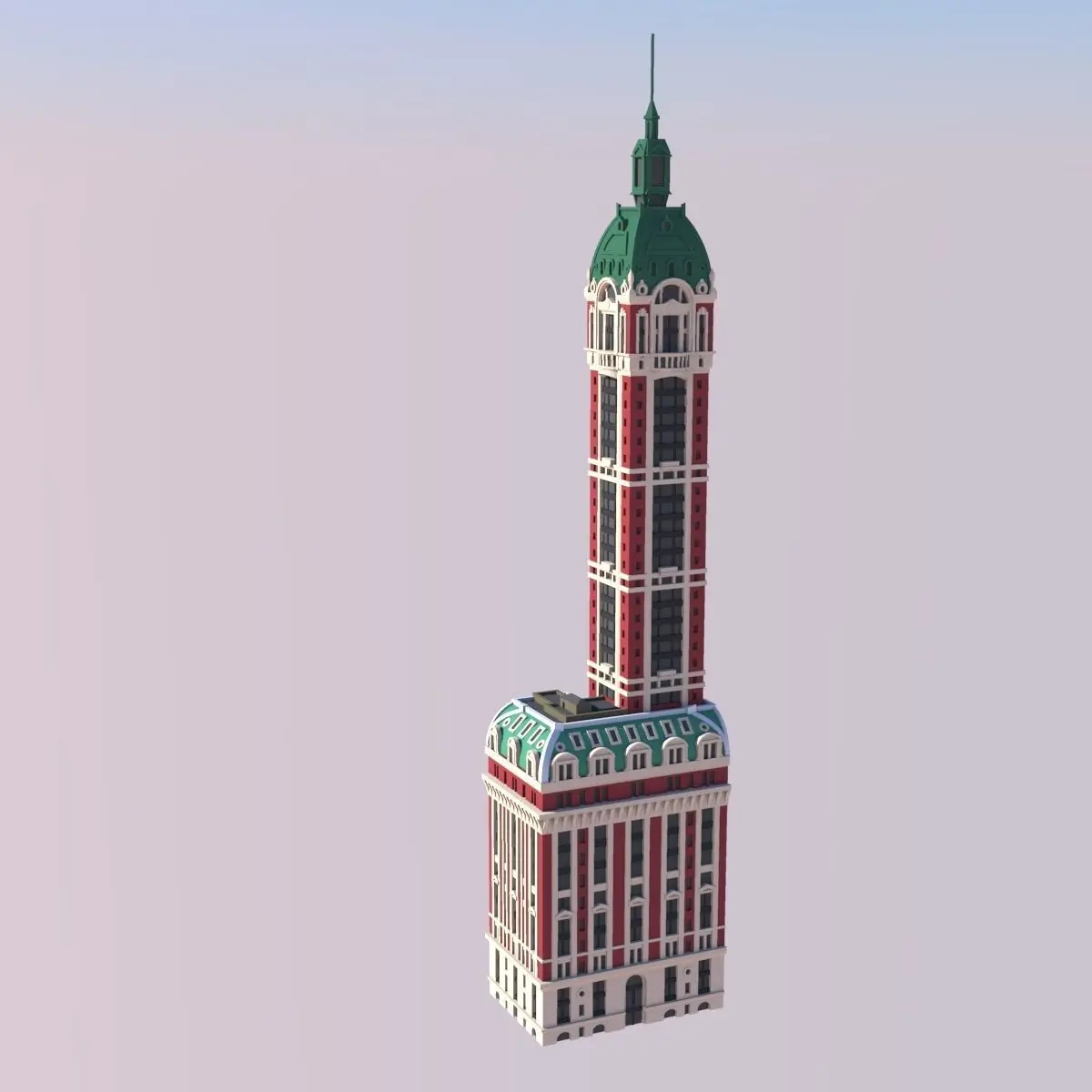 The Singer Building was a 674ft (205m) tall building in New York City's Financial District. Built in 1908 in the style of Beaux Arts, it was the tallest building in the world upon completion. The building was demolished in 1968 to make way for One Liberty Plaza, making it the tallest building to ever be intentionally destroyed.