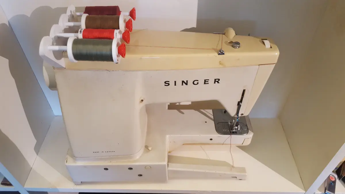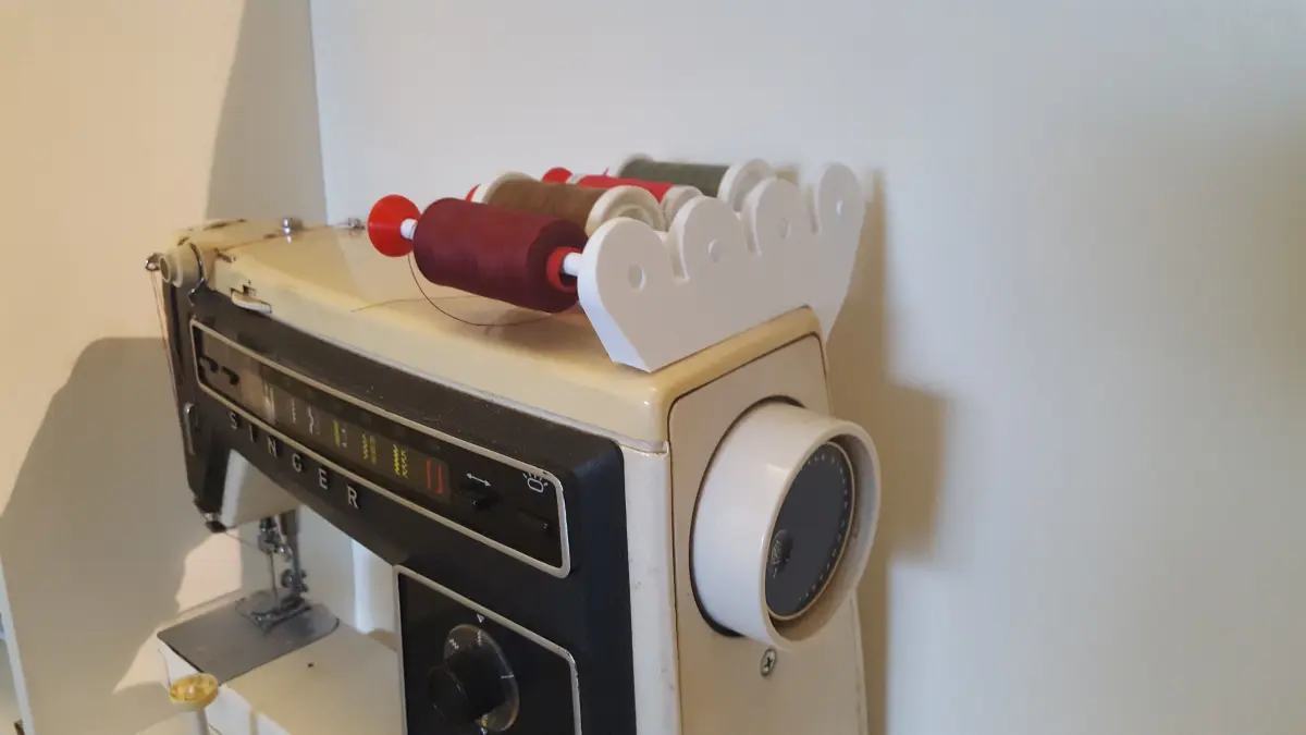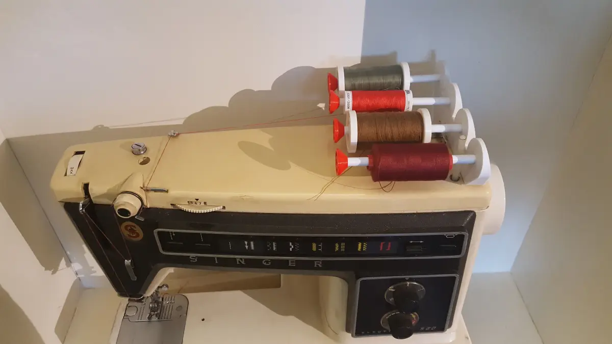 While experimenting with the 40 Years old Sewing Machine of my mother..... I made a few modifications to it. One of them is a new Spool Holder that can be swapped out for the old on. Now it is possible to use up to 4 Threads at once.