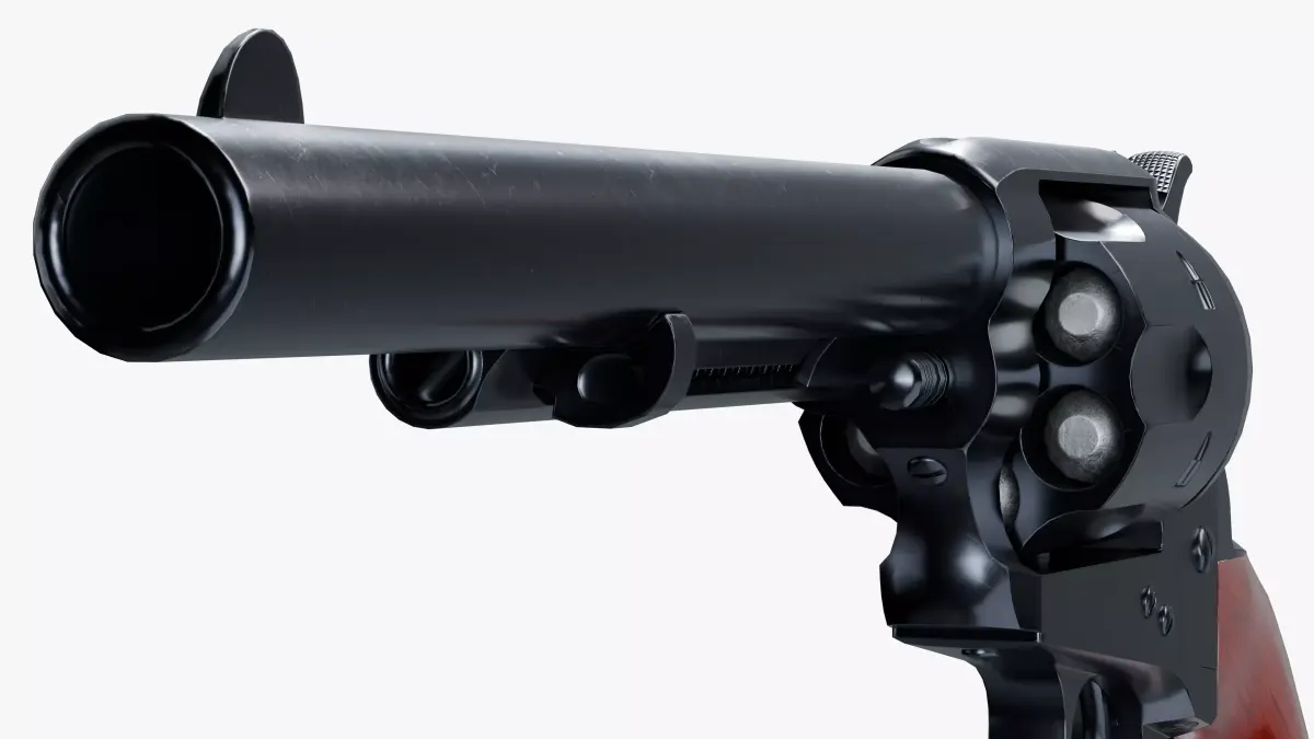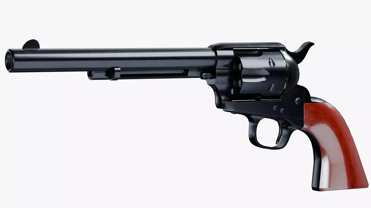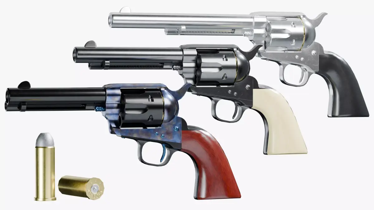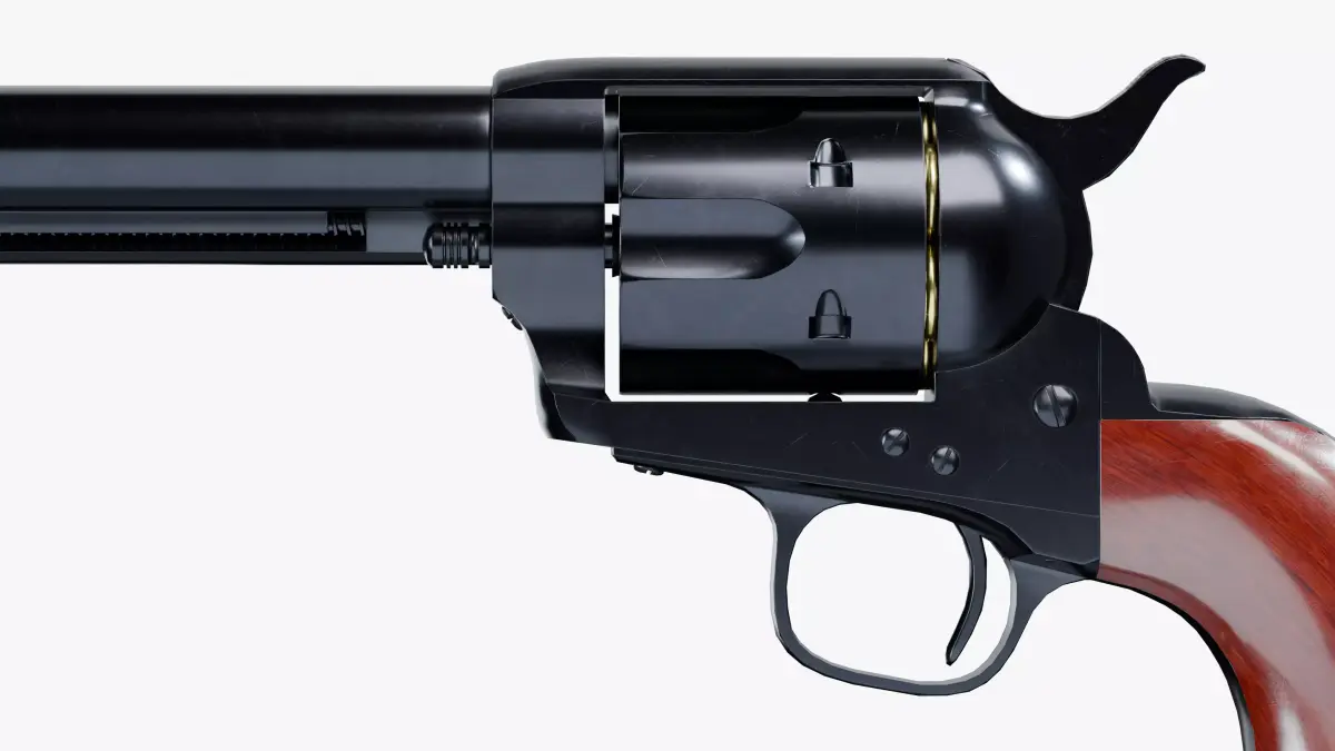 Single Action Army Revolver modeled in real-life scale, units in centimeter. Parts separated and correctly named.