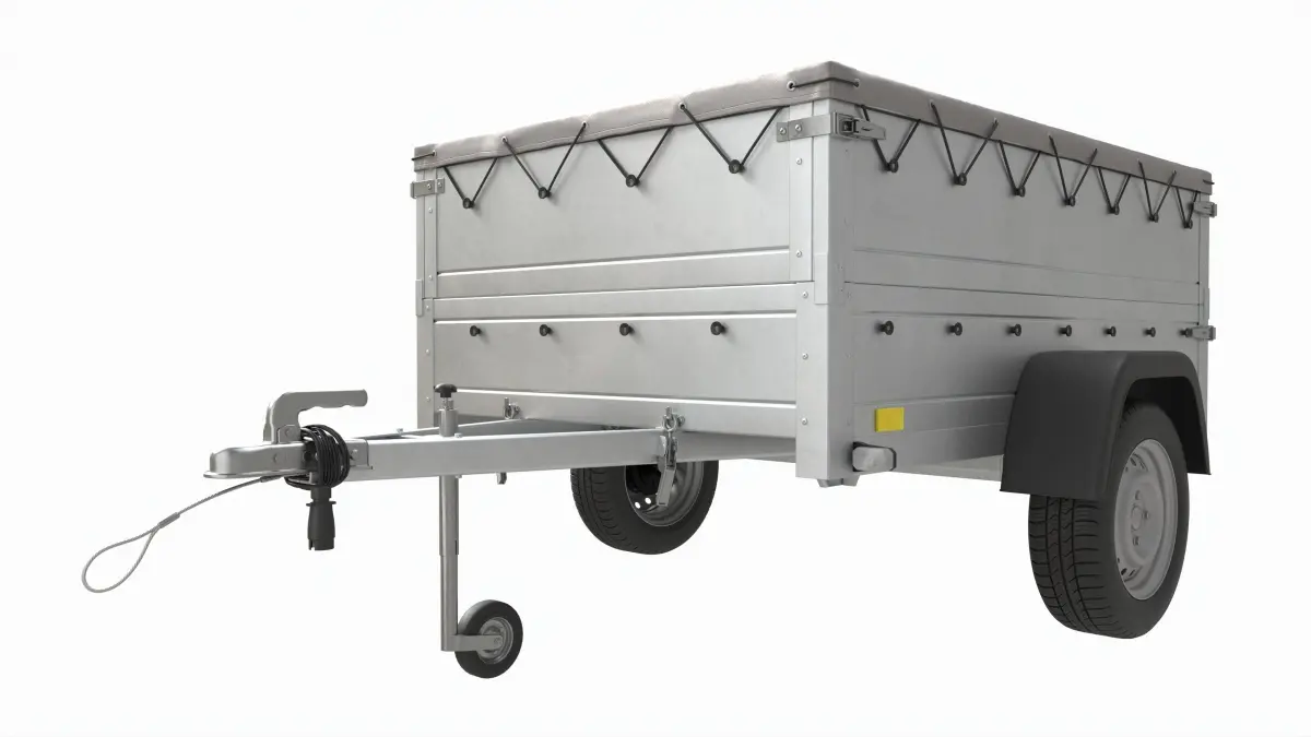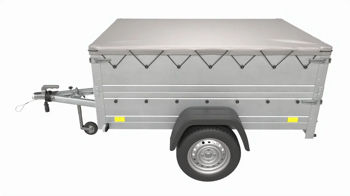Single axle car trailer with extra walls cover jockey wheel 3D model