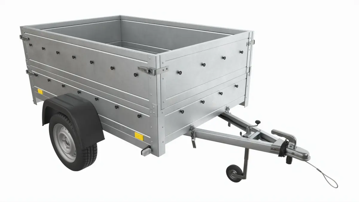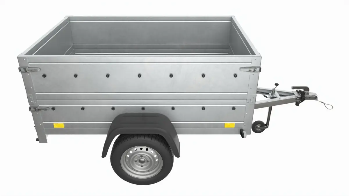 Single axle car trailer with extra walls jockey wheel 3D model