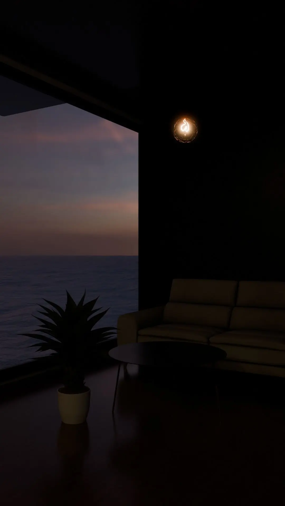 Simple Living Room Decorative Lamp With Icospherical Design.The glowing filament isn't very powerful, in order to keep its orange-ish tint.Bulb is also tinted with a gradient fading from black to transparent.