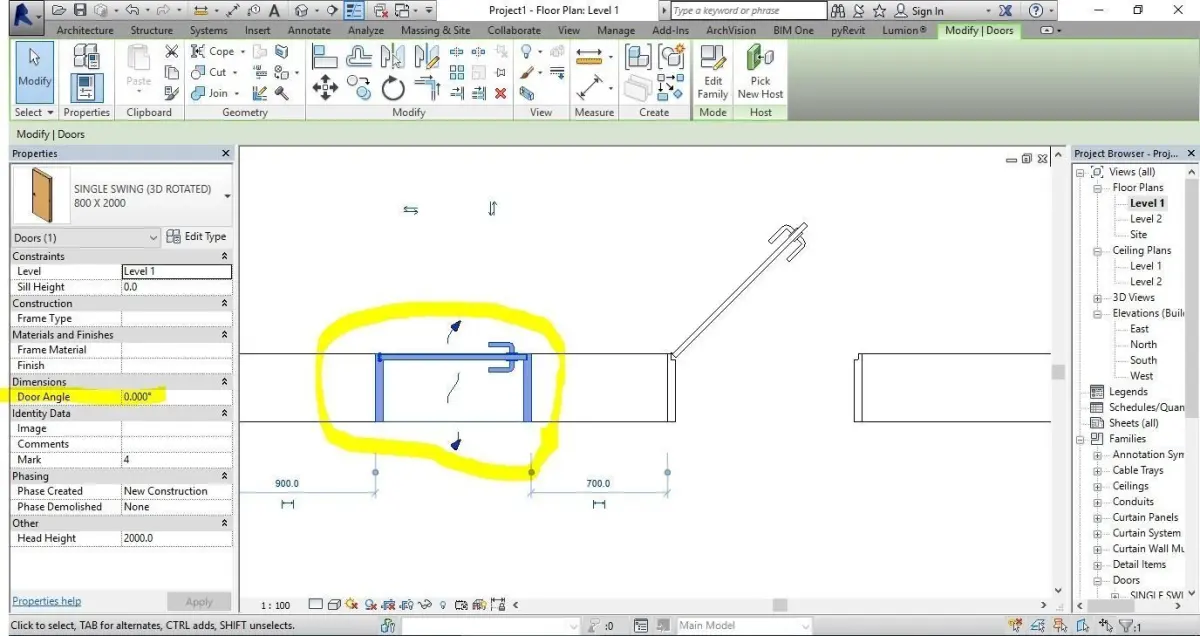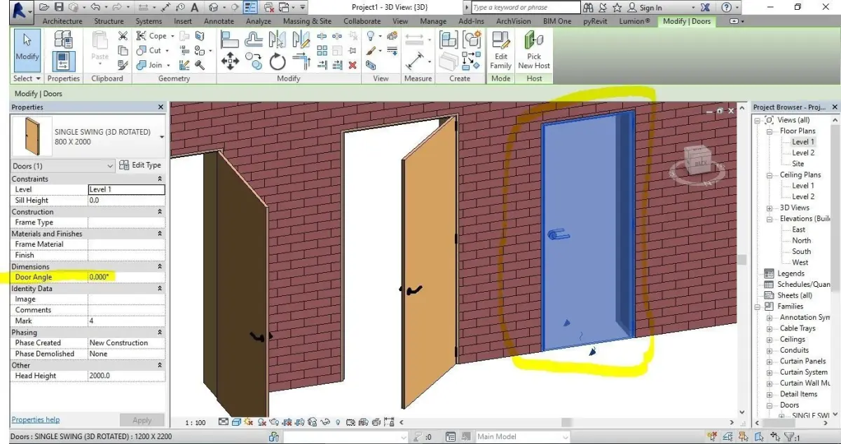 this Single Door Revit Family with parameter Rotation to let you Rotate the Door in 3d as you need in all angles from 0 to 180 Degree it's have all details (Hinges , Framed , Panel , Handle )also you will get Full parameter for Width , Height , Handle z , Handle x , Frame width , Door Angle , Door Frame Material , Door Panel Material , Door Handle Material & Door Hinge Material ) i have created this revit family in Revit 2016, so you can use it in revit 2016 , 2017 , 2018 , 2019 and all news version Enjoy thanks