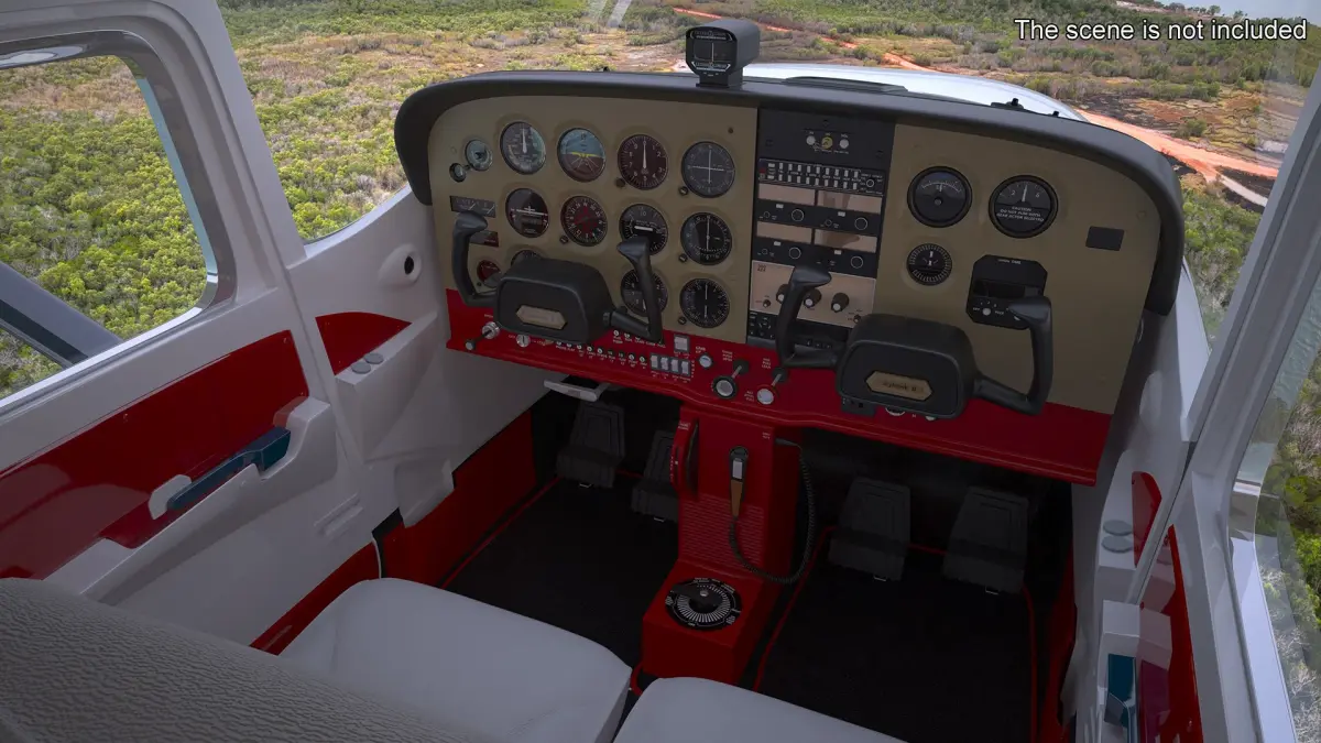 Single Engine Private Airplane Cessna 172 Rigged has a detailed interior. Doors can be opened. The pose with open doors on the render images is an example and can be easily recreated using rig, it is not initially included into the product.