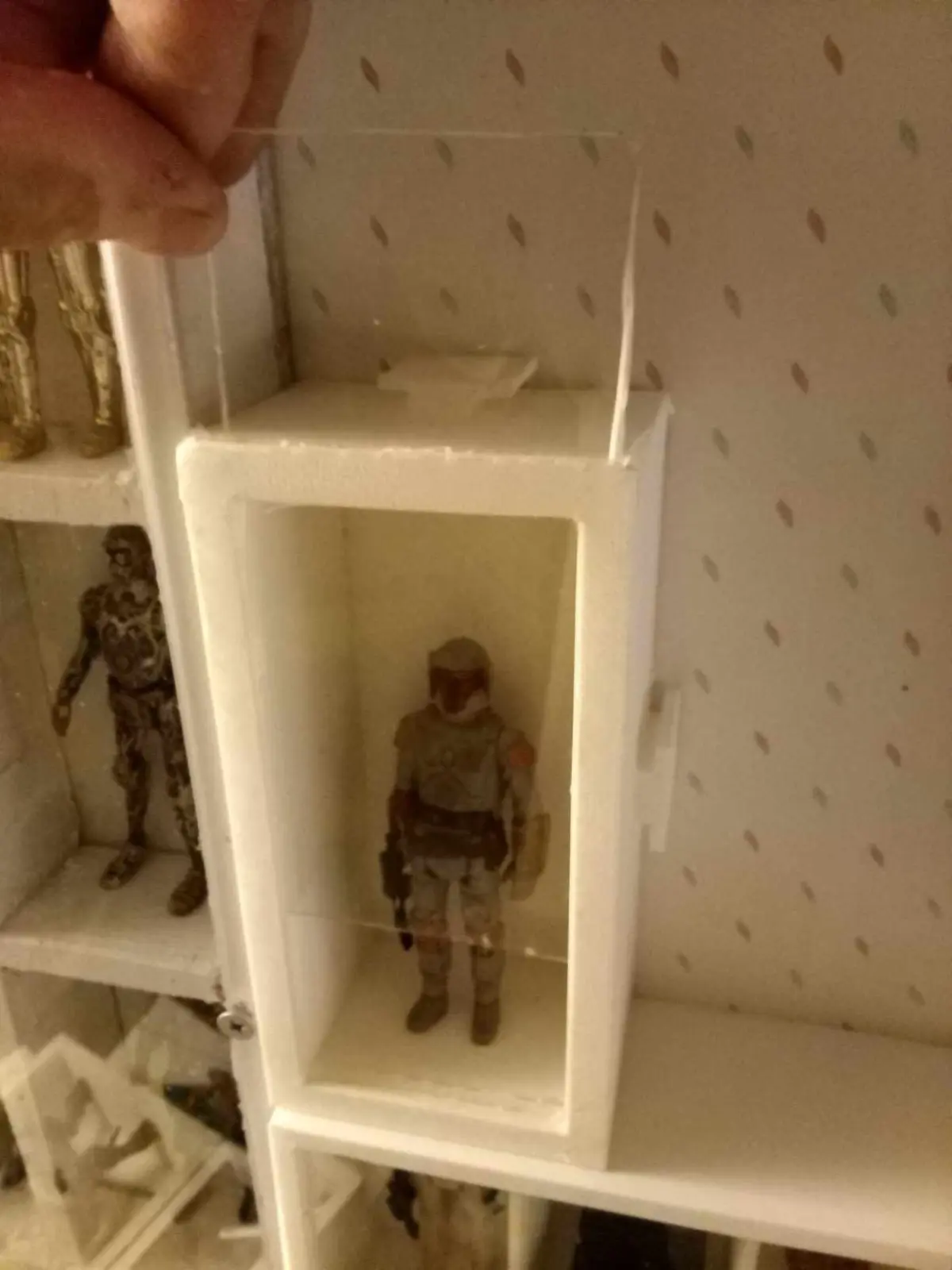 Protect your little valuable investments...Display cases with window for your favorite cars and figures and small dolls. Single interlocking display boxes for figures, action figures and toy cars Star Wars GI Joe Adventure People miniature dolls and many more. Mount one or two and others can be easily added or removed around your wall space. No need to build shelving. Don't let your little delicates get worn down in a box, put your tiny treasures on display to admire and as a conversation piece. Increase or shrink box size to accommodate heman and nija turtles or barbie. Also accepting silver bullion and crypto especially SHIBA. Design is for the case, plexiglass can be easily purchased to fit slide at retail box (ie home depot or lowes...theyll even cut it for you) hardware stores. Reach me at bilbo fett on fb (chewbacca), 3 dollars and you can make as many for your personal use as you like (not for resale or profit) Ad is for the cases, figures not included. I can print them for you but the cost will increase and be per case. This design is for the case that holds figures and vehicles. See my other display cases that holds figures and vehicles. Rights Reserved Patent Pending NOZBOXEZ