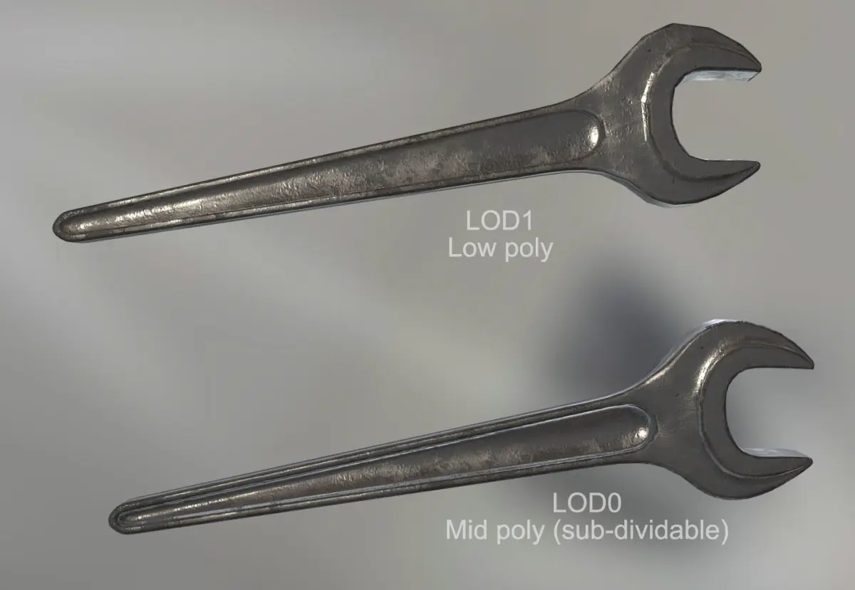LOD0 triangles: 3156LOD1 triangles: 440LOD 0 is subdividable for higher polycount.