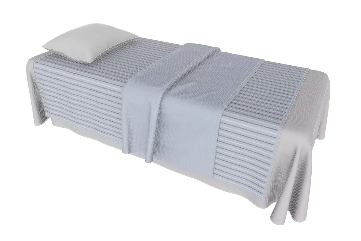 The PBR materials are meticulously applied to ensure realistic fabric textures, subtle folds, and natural light absorption, giving the textiles a soft, inviting, and high-quality appearance. This model is ideal for architectural visualizations of wellness centers, spa rooms, medical clinics, or hotel environments, instantly adding a sense of professionalism and serenity to the scene.