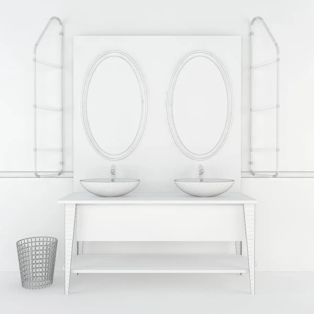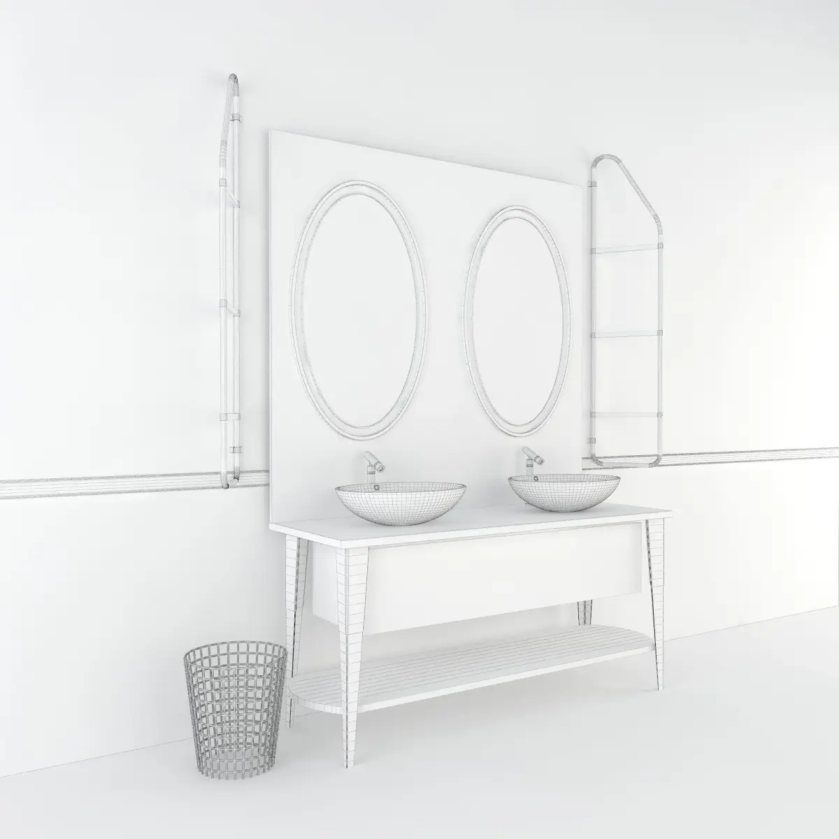 Model Sink Scavolini washbasin Without wall and floorDimensions :Width / Length 192 cmDepth 70 cmHeight 270 cm