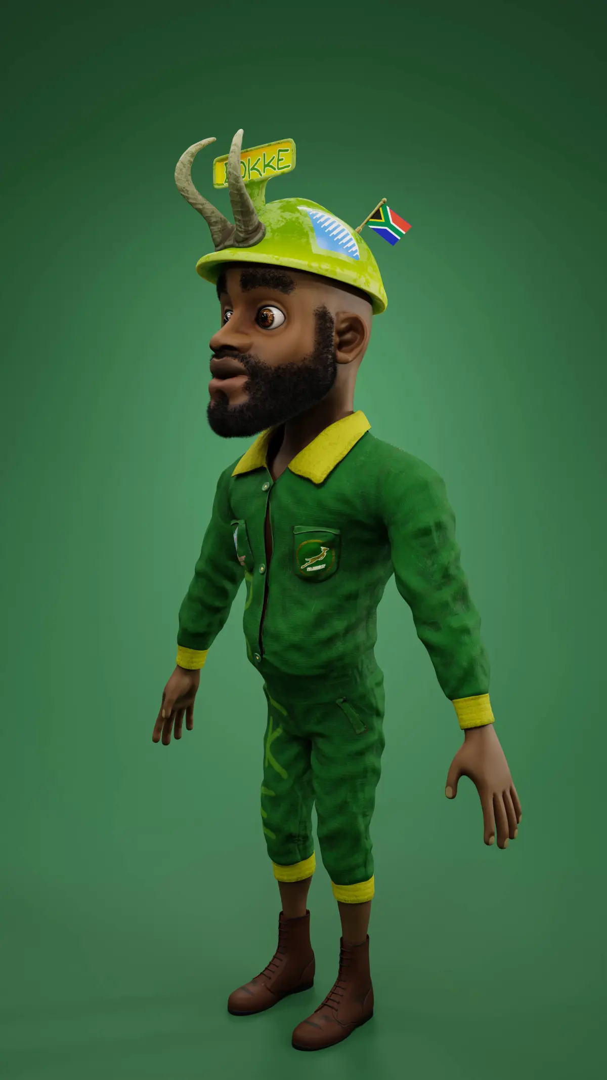 This is a springboks fan . Fully rigged ,including face. using Auto-Rig_pro in Blender.Unique designUnrigged Obj included for own rigging.