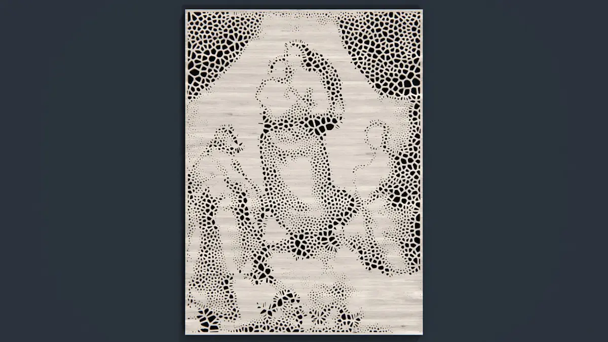 Stylized 3d print interpretation of the Sistine Madonna art originally painted by Raphael