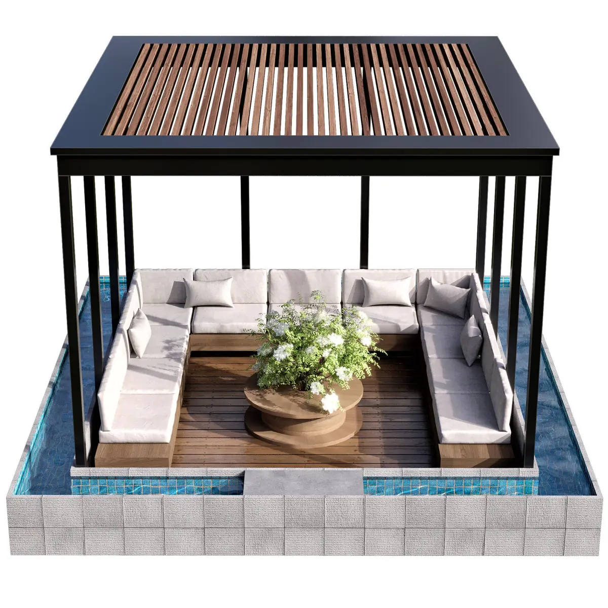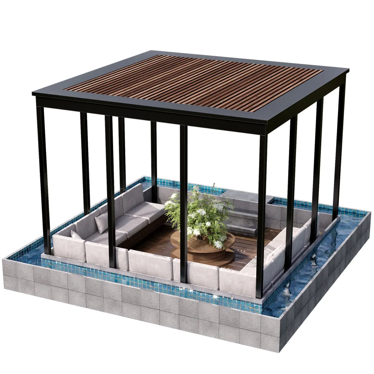 you can use that near swimming pool ,environmental spaces and your buildings landscape and etc.the model includes an area for sitting which can be used as interior an exterior design.