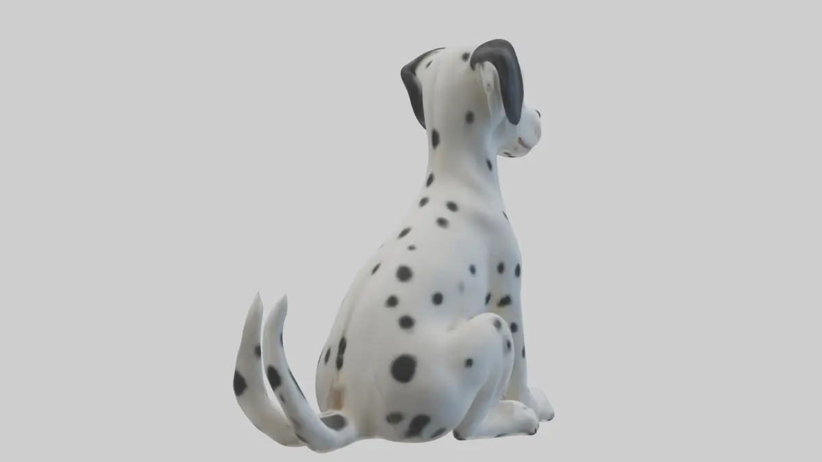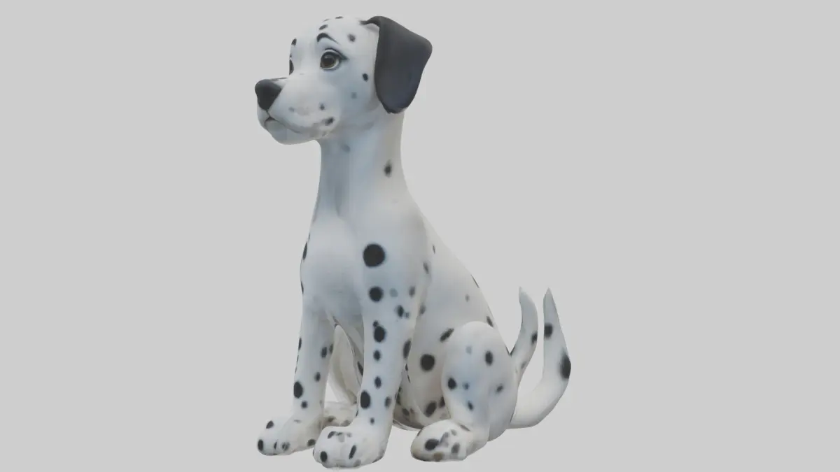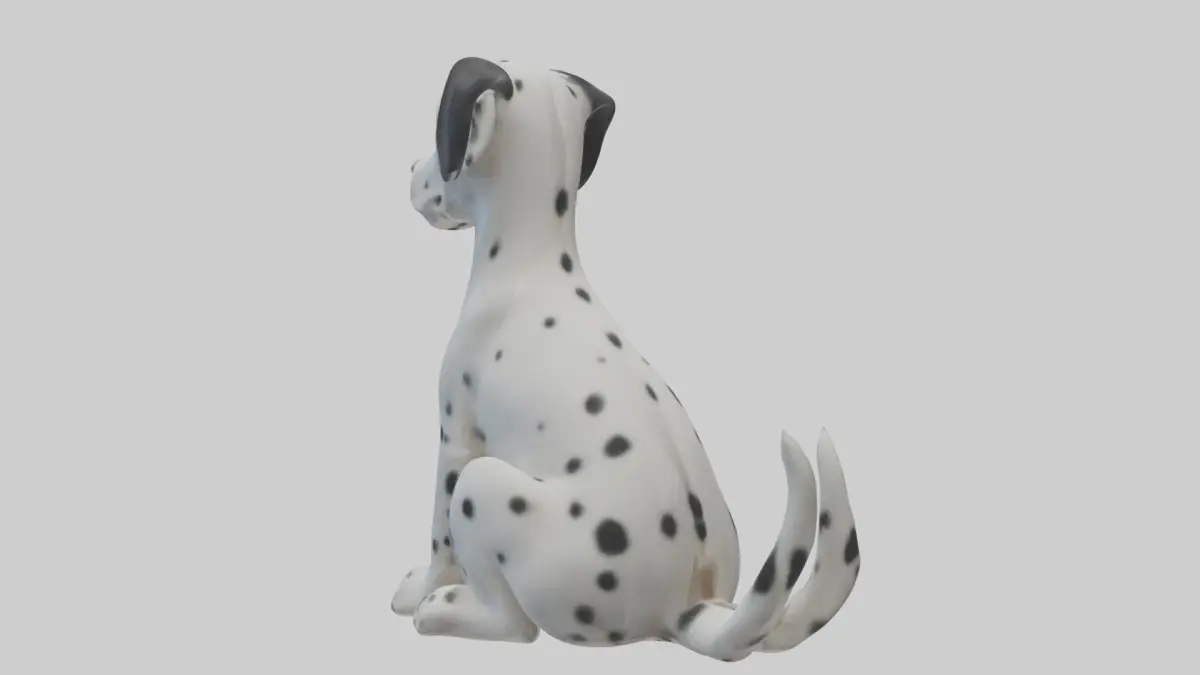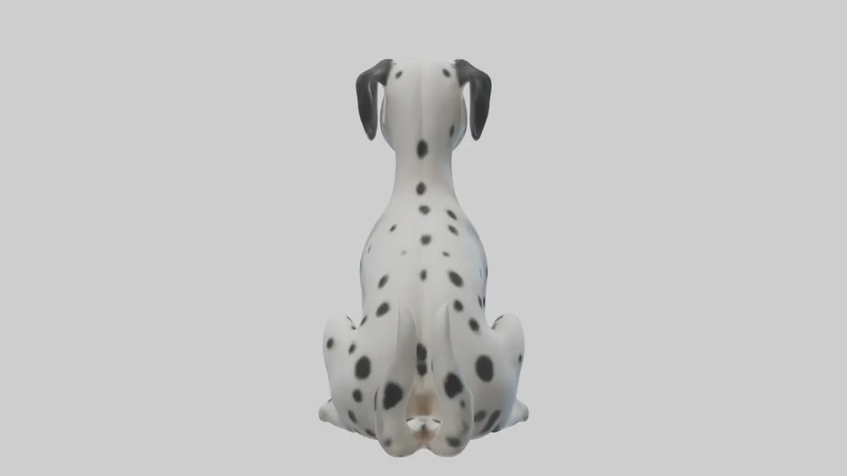 Sitting Dalmatian, 3D dog model, realistic pet, Dalmatian breed, dog animation, pet project model, 3D pet design, animal character, Dalmatian spots, virtual pet, dog anatomy, dog sculpture, Dalmatian decor