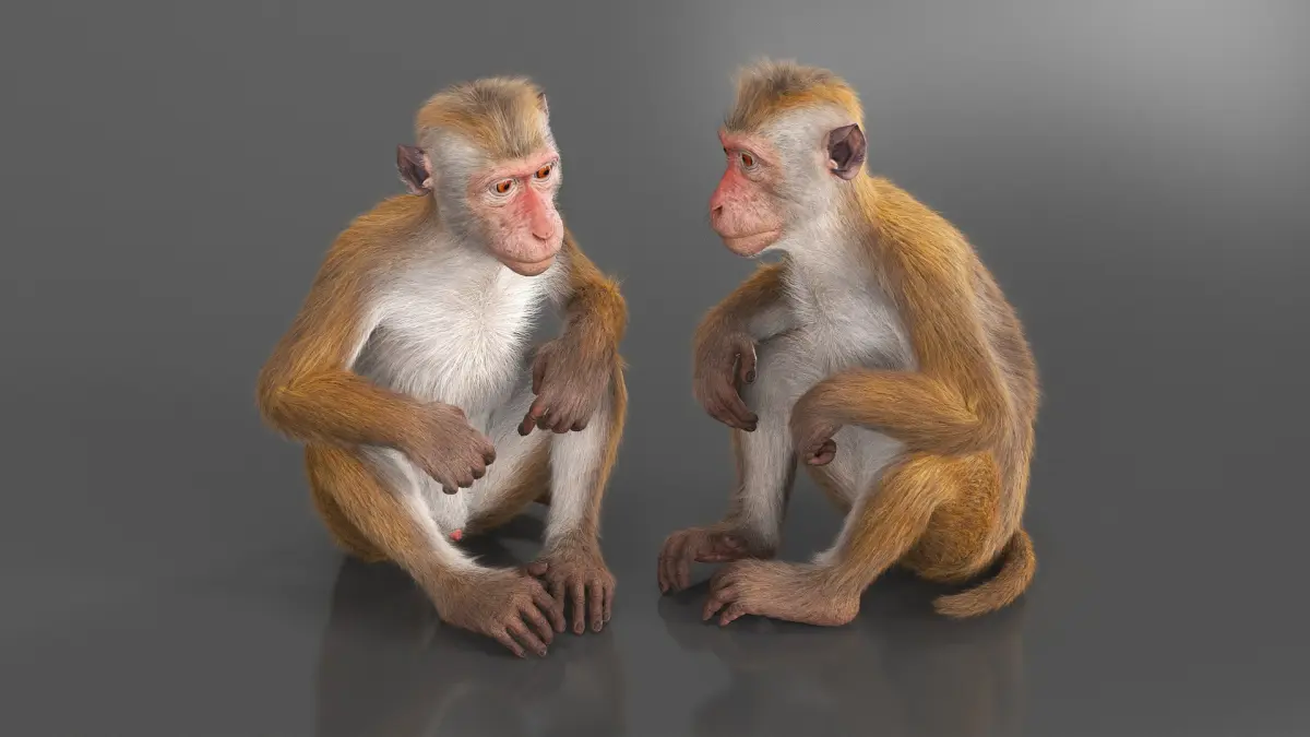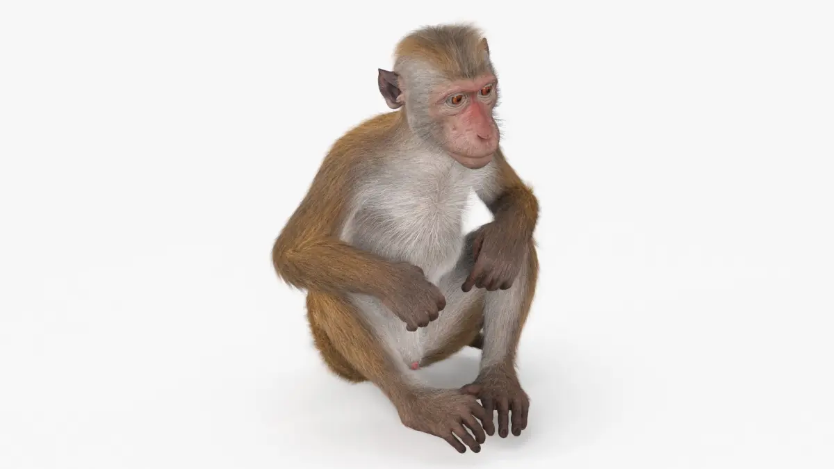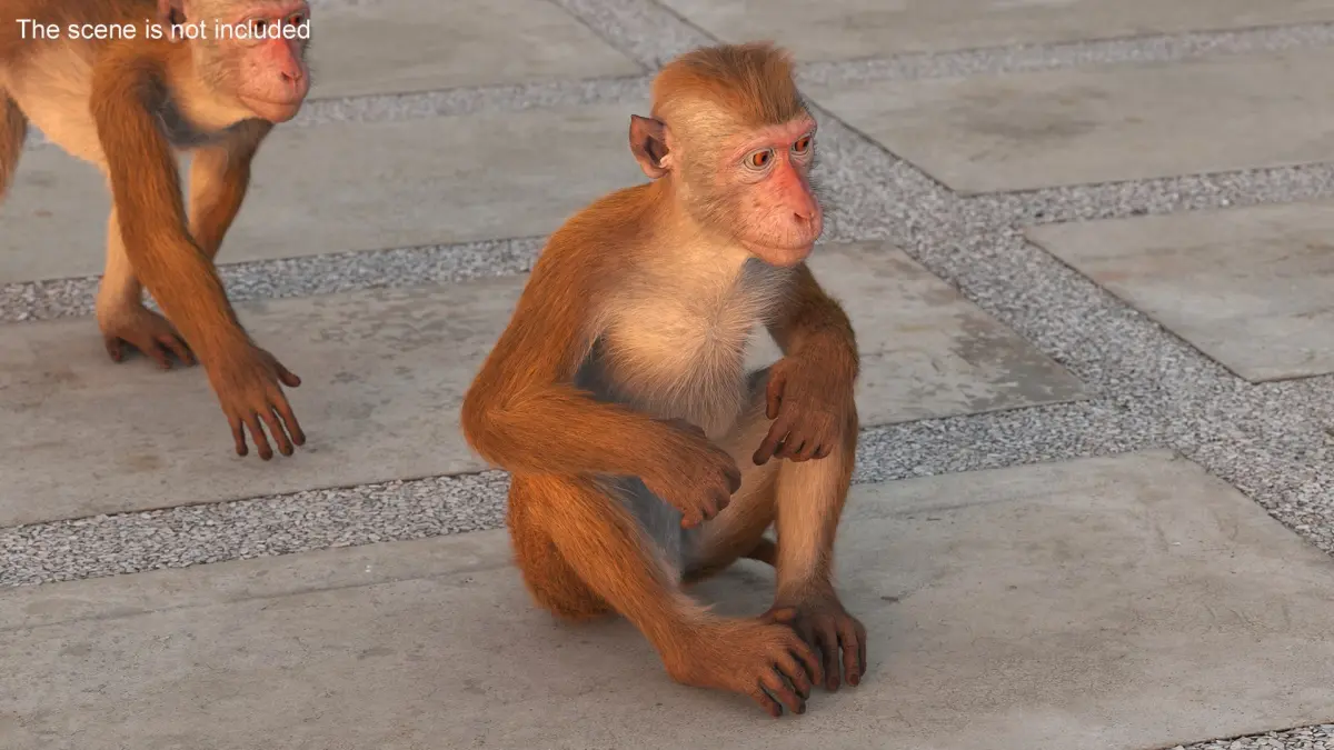 Sitting Macaque Light Brown Fur for Maya is a three-dimensional model of Rhesus macaque (Macaca mulatta or rhesus monkey), that is a species of Old World monkey.