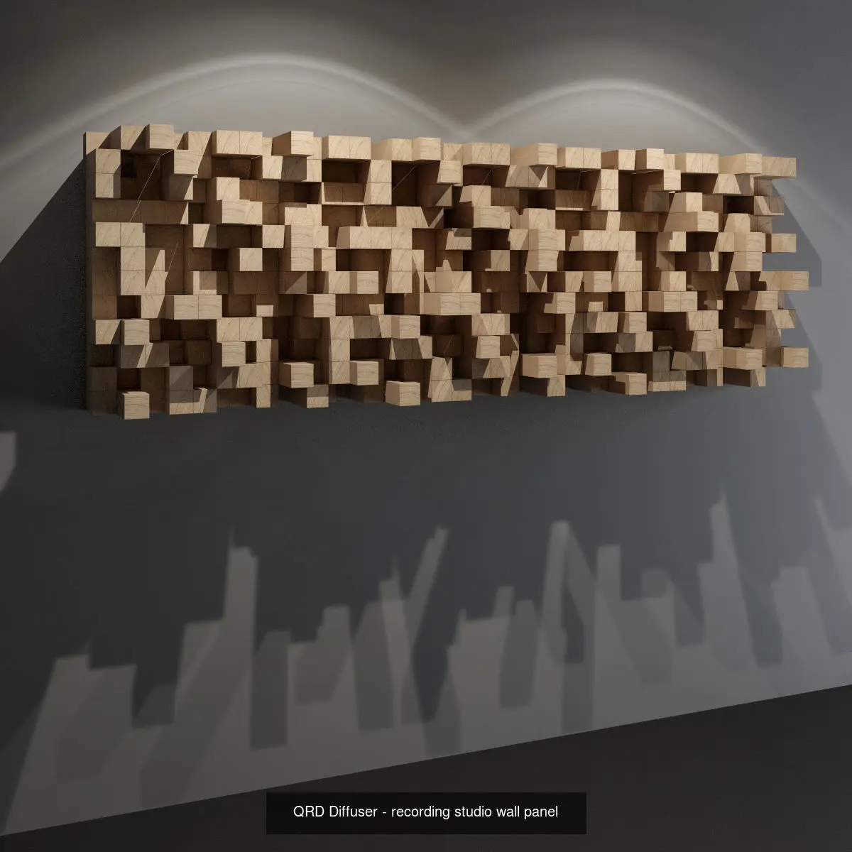 The modesl are for Cinema4D+VRay and standard Cinema4D but can of course be used in any other 3D software as well. Each panel consists of a base plate and different elements and instances of these. The shapes and heights correspond to an exact acoustic formula for diffusors, but of course You can rearrange the elements to Your own pattern. Since all elements and blocks on a panel are separate objects You can give them Your own textures as well. Exchange files for other software and all textures are included.