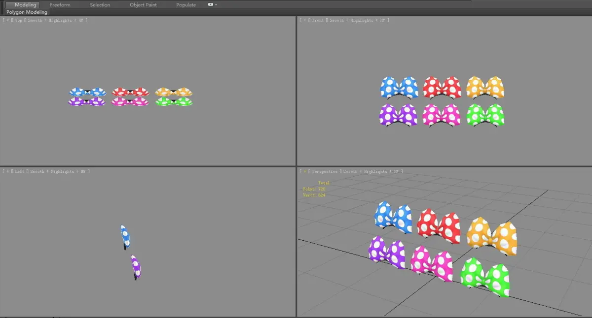 Six bow hair bands - hairpins - head decoration Low-poly 3D model