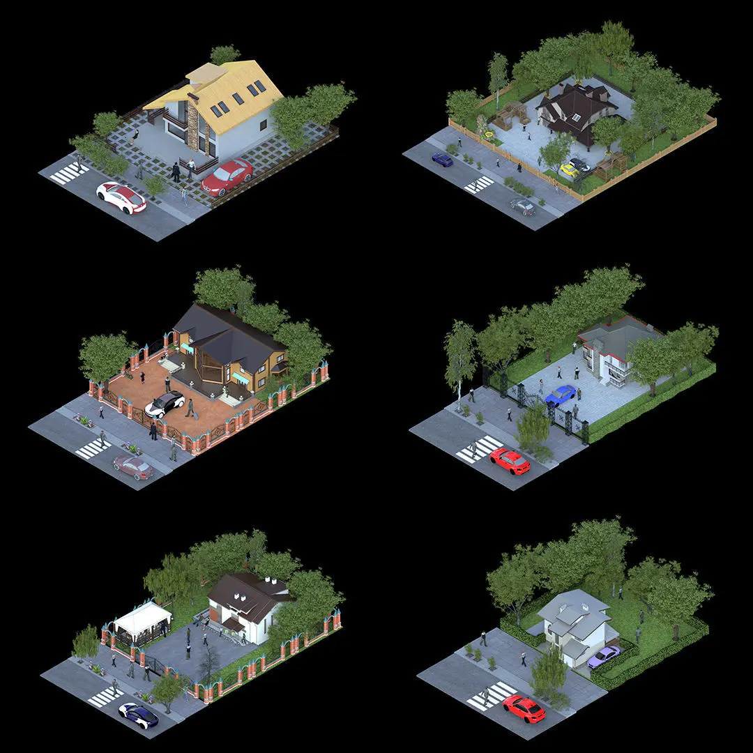 Each villa comes complete with customizable features, ensuring adaptability to your specific project requirements. The collection also includes meticulously optimized and professionally textured 3D models, ready to be seamlessly integrated into popular 3D software and game engines, providing you with a hassle-free experience.