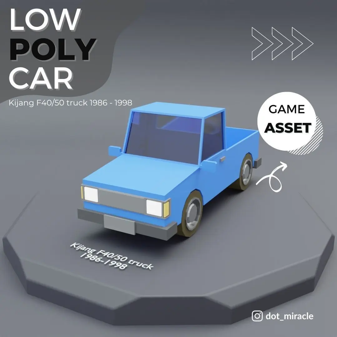 Cartoon stylized low poly vehicle pack. Six classic Japan cars 80s and 90s. Starlet 70 Van, Kijang F40/F50, Kijang F40/F50 Truck, Daihatsu Hijet Van, Daihatsu Hijet Truck, Lite Ace