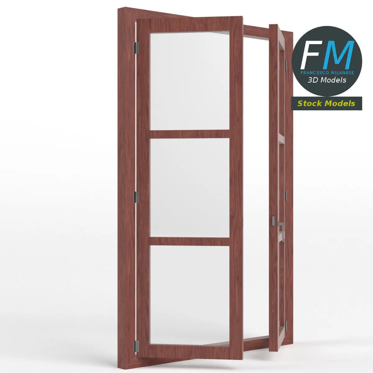 Six panel double window 3D Model. 6 individual objects (glasses, windows, frame, handle; so, you can easily rotate or even animate them), sharing two non overlapping UV Layout maps, Materials (glass, frame_and_windows) and PBR Textures sets. Production-ready 3D Model, with PBR materials, textures, non overlapping UV Layout map provided in the package.