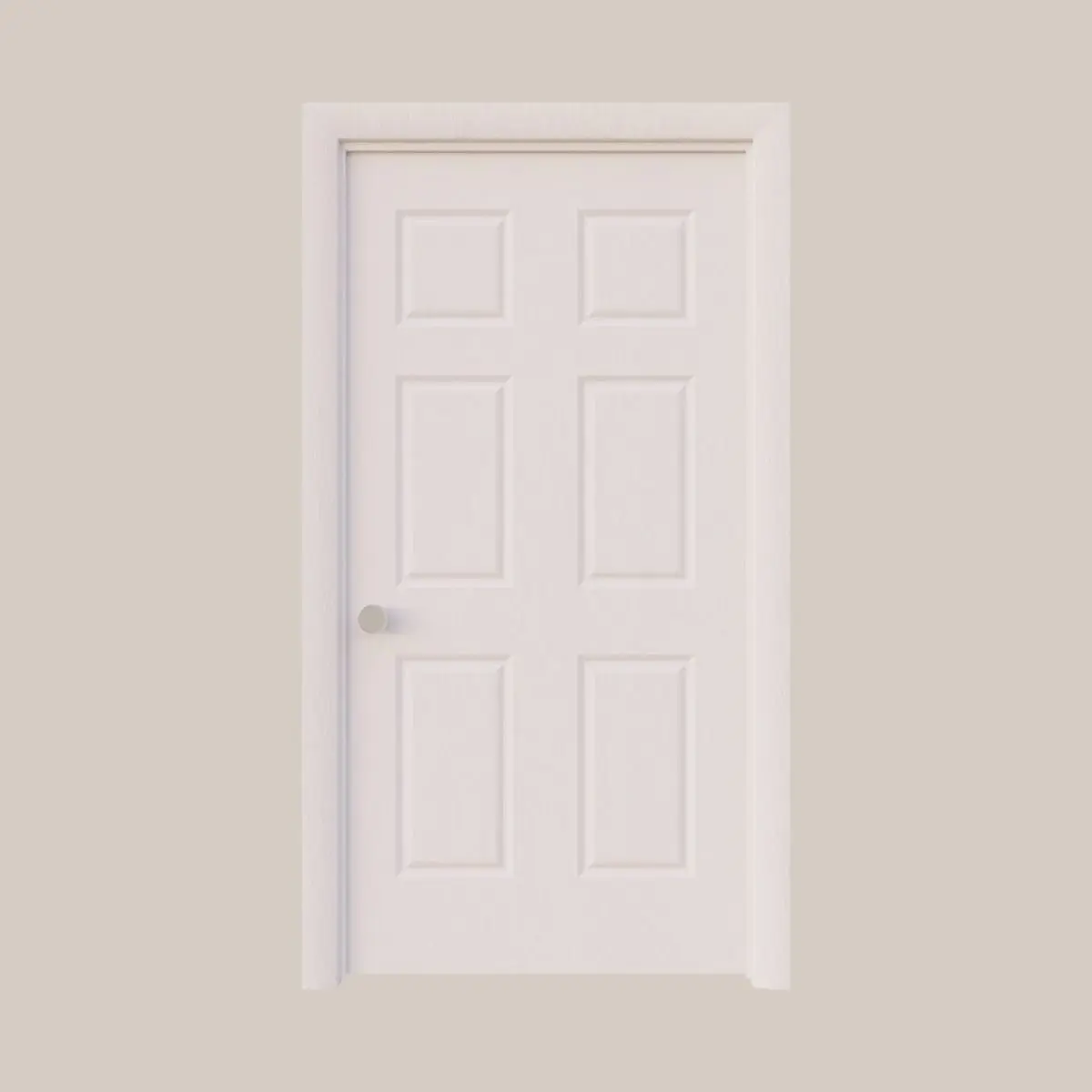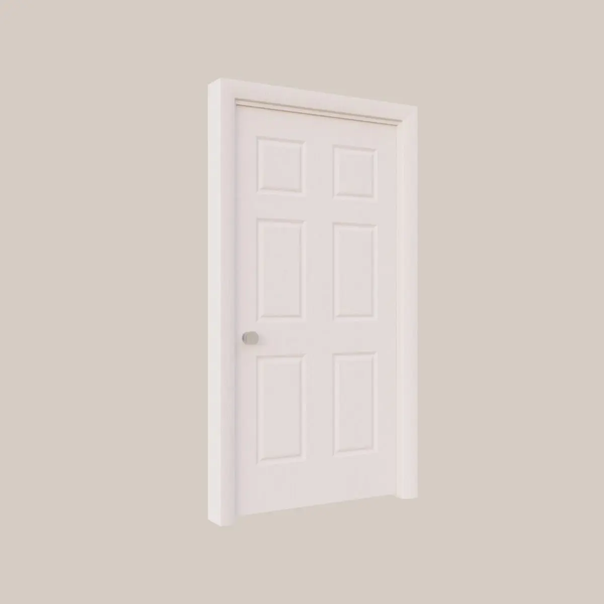 Six Panel Interior Door comes complete with 3 door knobs and hinges. Hinge is attached to both door frame and door itself for realistic animation when opening and closing the door.