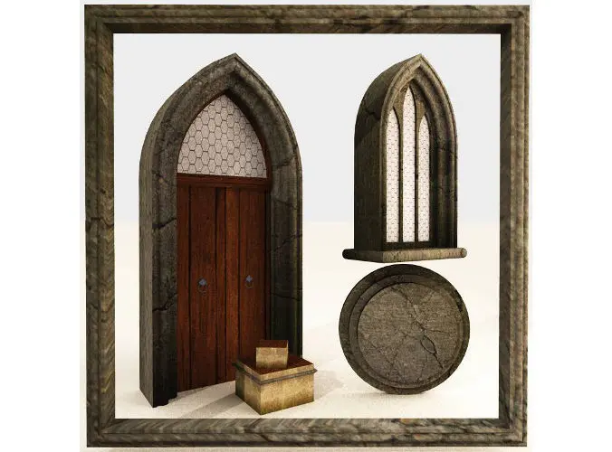 Files included in MedievalDoorWinKit-GothicArch.zip:Models (10):.../MedievalDoorWinKit/ MedievalDoorWinKit.dae MedievalDoorWinKit.fbx MedievalDoorWinKit.obj MedievalCube.obj MedievalDoor.obj MedievalHouse.obj MedievalMoulding.obj MedievalStairs.obj MedievalWindow.obj MedievalDoorWinKit.sib