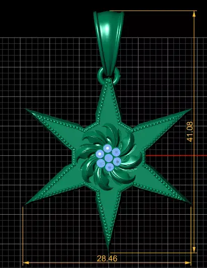 This radiant gold pendant takes the shape of a bold six-pointed star, elegantly framed with fine beaded edging that adds a touch of vintage charm. At its center, a swirling floral motif emerges in high-relief design, crowned with a sparkling cluster of round-cut gemstones. The combination of sharp star geometry and the soft, flowing flower pattern creates a harmonious balance between strength and grace, making it a perfect piece for those who love distinctive statement jewelry.