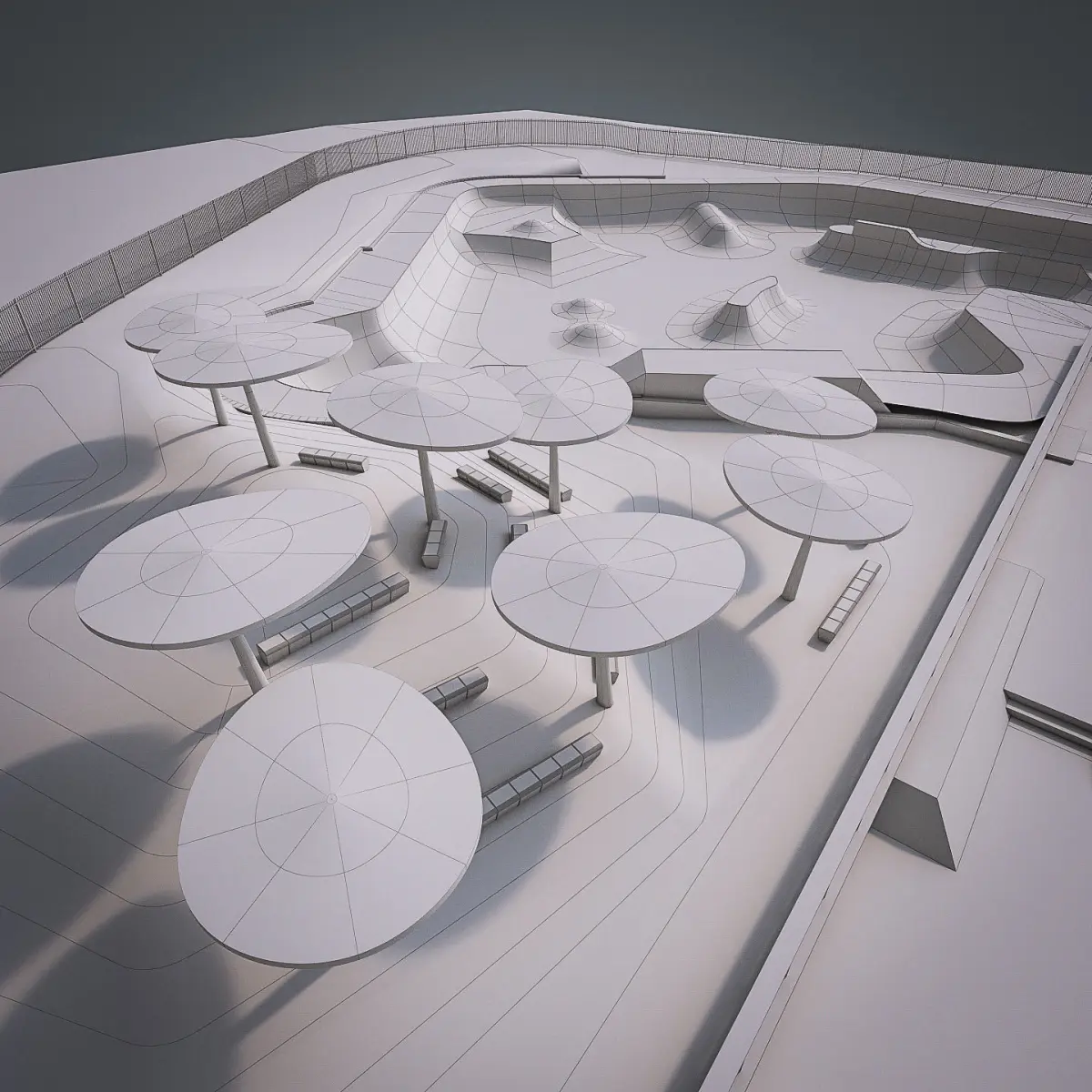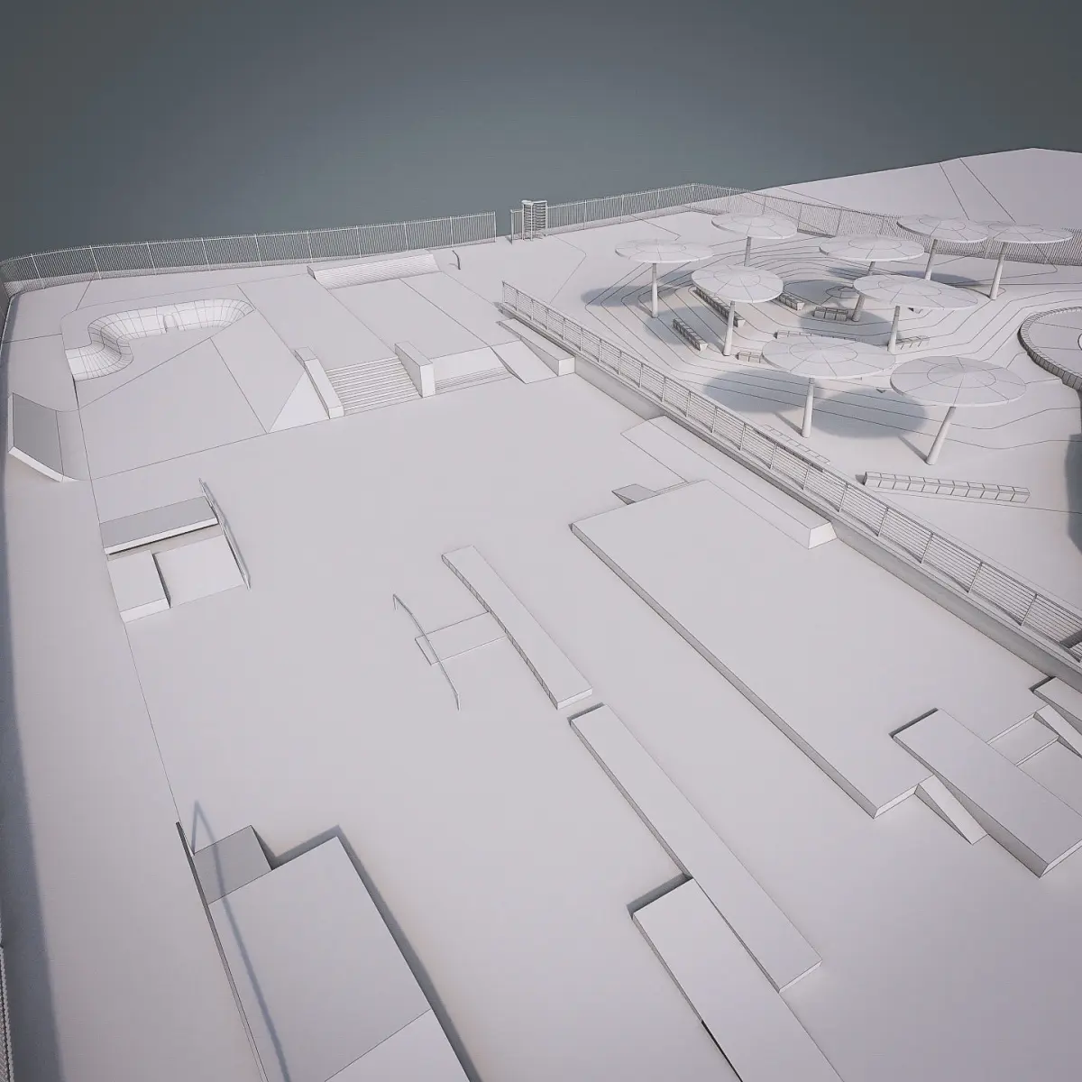 This is real world size model of Skate Park with surrounding area made by professional architect.