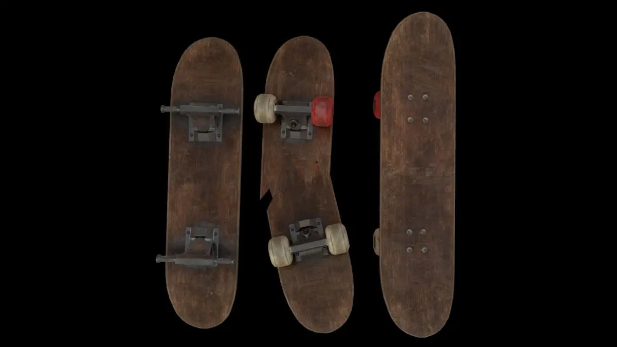 Here is a PBR textured Skateboard you can use as environment object, research, Urban Criminal games of found based games.