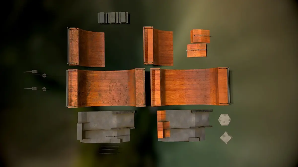 2048 x 2048 textures and 1024x1024 textures included assets : fubox 6 faces - funbox 4 faces - D_ridge_ledge -ground ramp with rail - wood textures free - light_pole1 ( dirty and clean version ) - lightpole 2 -( dirty and clean version ) - rail wide ( clean and dirty version ) - rail stright ( long and short versions ) - side rail - skatebaording rumb ( clean and dirty version ) - skateboarding ramp 2 ( 2 versions ) - skateboarding half rumb ( dirty and clean versions ) - table ( 3 versions ) - wall