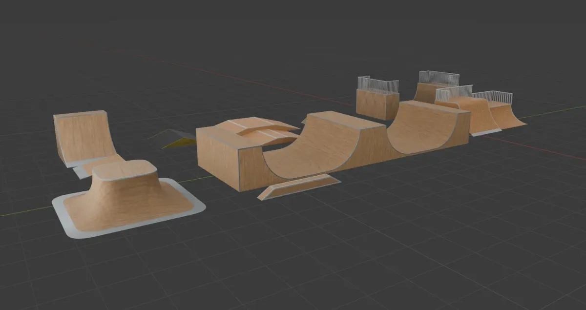 11 Unique Ramps: The pack includes a diverse array of ramps, from simple kickers and quarter pipes to complex transitions and banked ramps, catering to all skill levels and styles.High-Quality Geometry: With a total of 17,342 faces and 22,774 vertices, each model is crafted to deliver detailed and smooth surfaces without compromising on performance.Optimized for Performance: Despite the high level of detail, the models are optimized to ensure they perform well in real-time applications, making them perfect for games and interactive simulations.Realistic Design: Each ramp is designed with realistic proportions and angles, ensuring an authentic skateboarding experience in any digital environment.Versatile Usage: Whether you’re building a modern skatepark, an urban skate spot, or a backyard ramp setup, this pack has the variety needed to bring your vision to life.Easy Integration: Models are provided in standard 3D file formats compatible with major 3D software and game engines, ensuring easy integration into your projects.