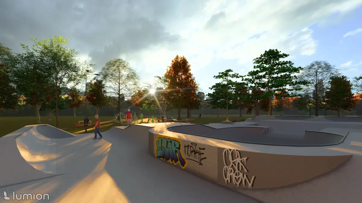 pln. skp. dwg. obj. png. stl.Skate park design for renders, games, or 3d printing.Graffiti png are also made by me.No ai.Trees, people and textures are not included.