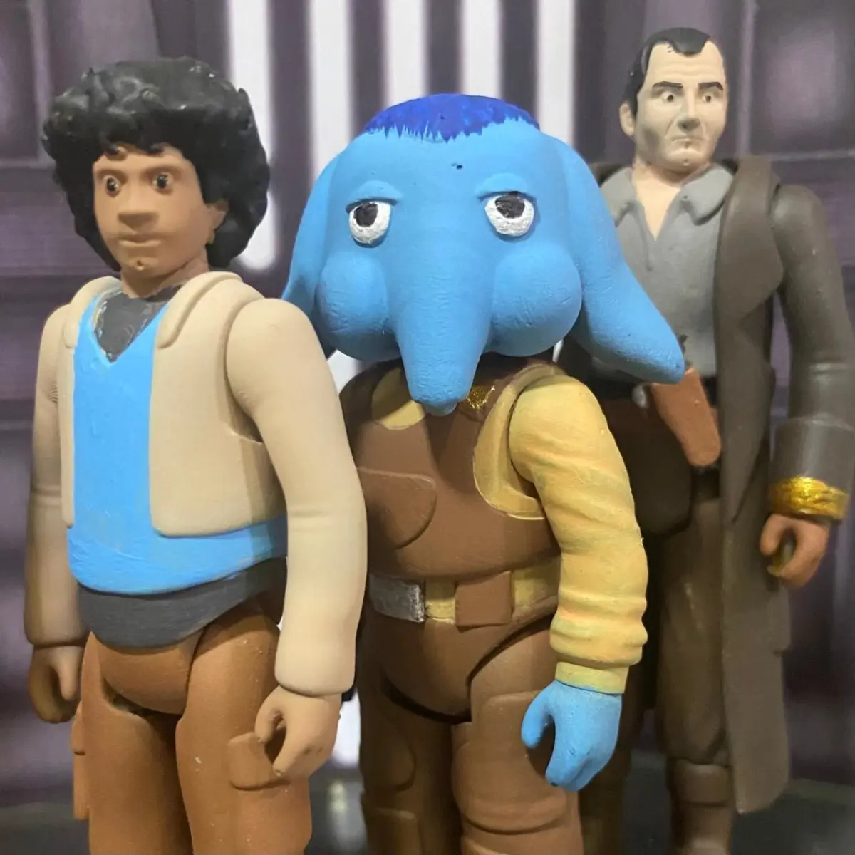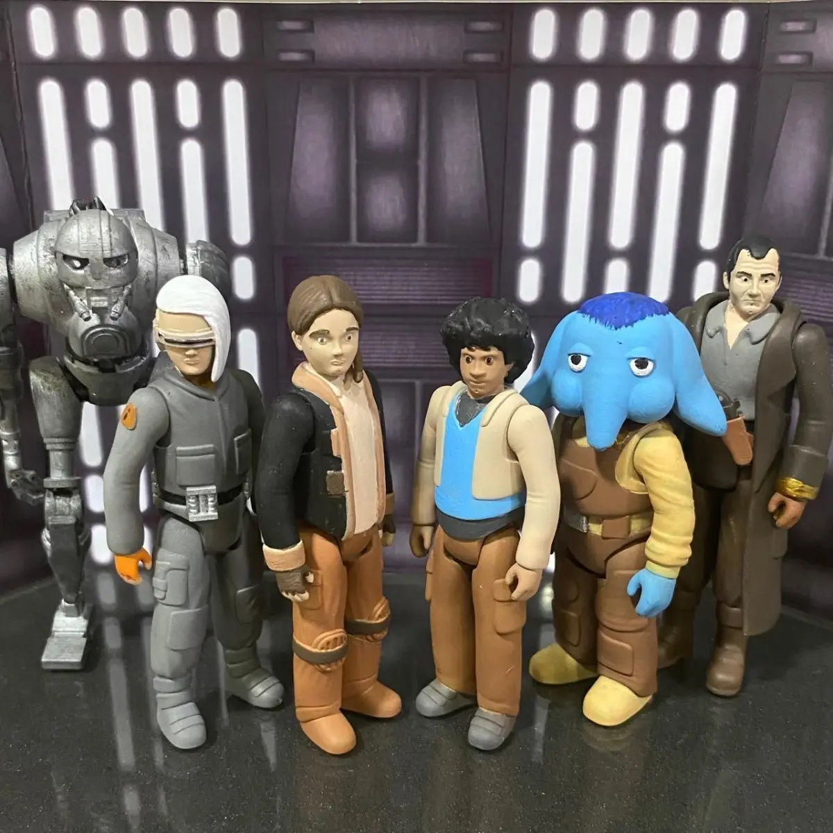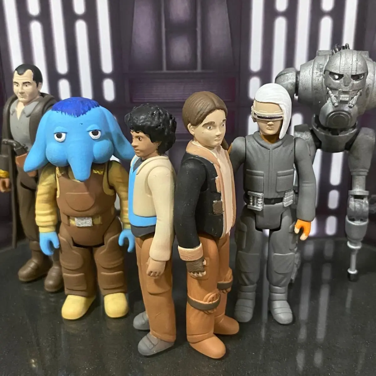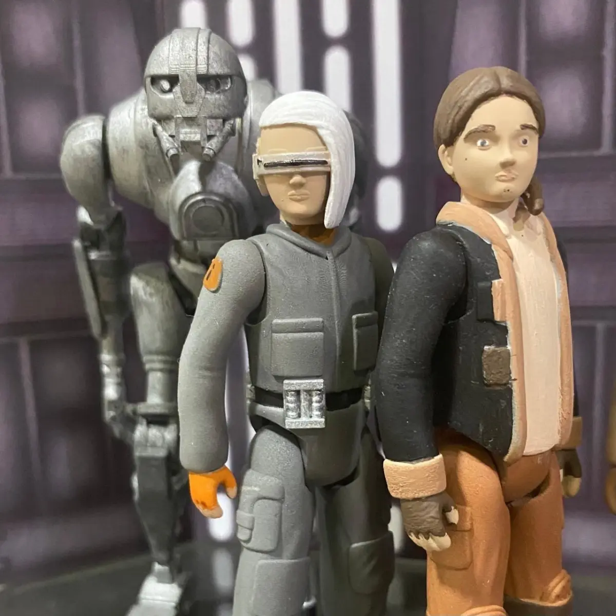 3d model inspired by the characters from Star Wars Skeleton Crew, in the style of vintage Kenner toys.
