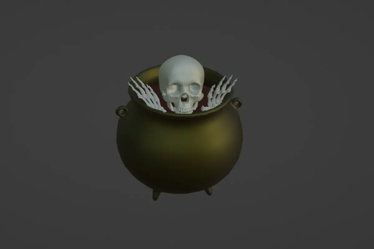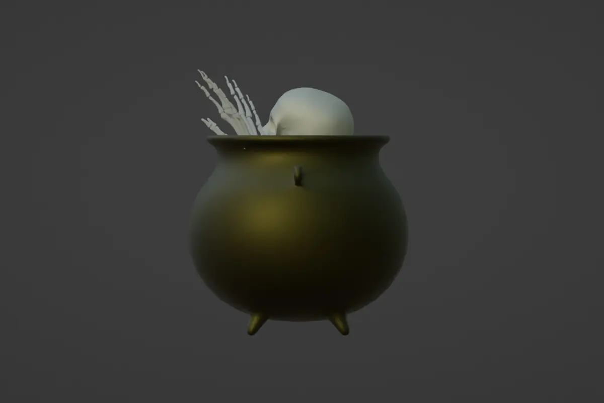 Skeleton in Cauldron (Model is part of the Halloween package)