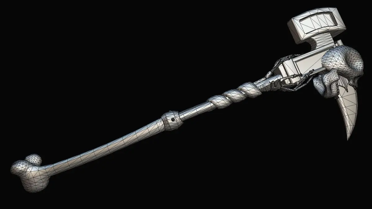 A Warhammer made from bones and obsidian. Comes with two texture sets at 1k each. texture variants are for unreal engine (including packed files), unity (metalic standard) and generic PBR