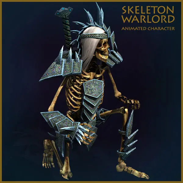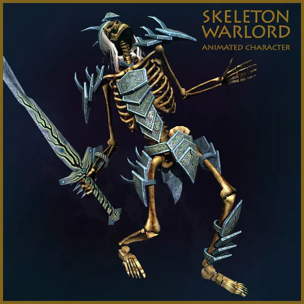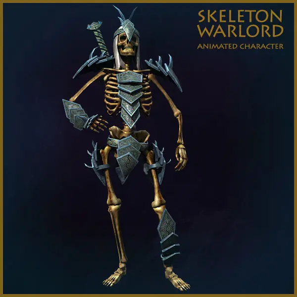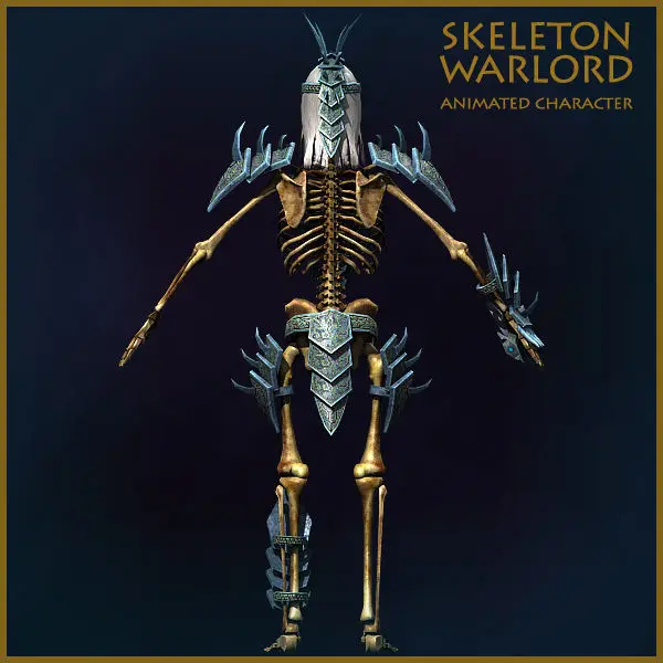 Skeleton has 7,292 polygons, 13,676 triangles and 7,200 vertexes. With armor, and two swords - 8,677 polygons, 16,339 triangles and 9,796 vertexes