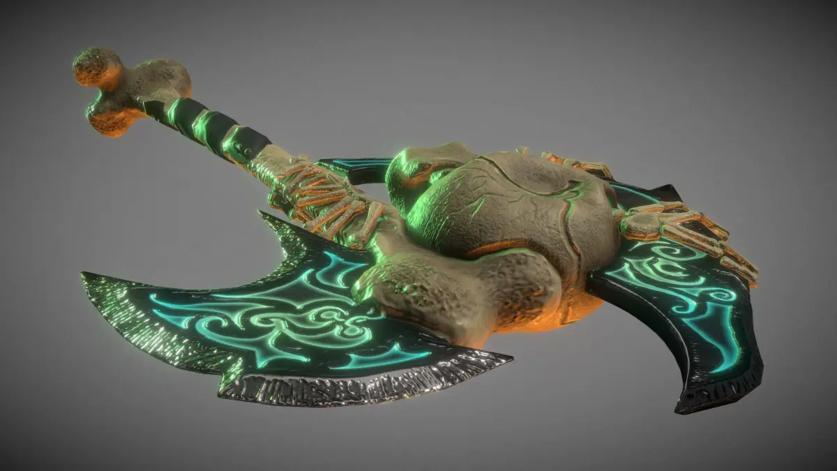 A battleaxe made from bones and obsidian. Comes with three texture sets at 1k each. texture variants are for unreal engine (including packed files), unity (metalic standard) and generic PBR