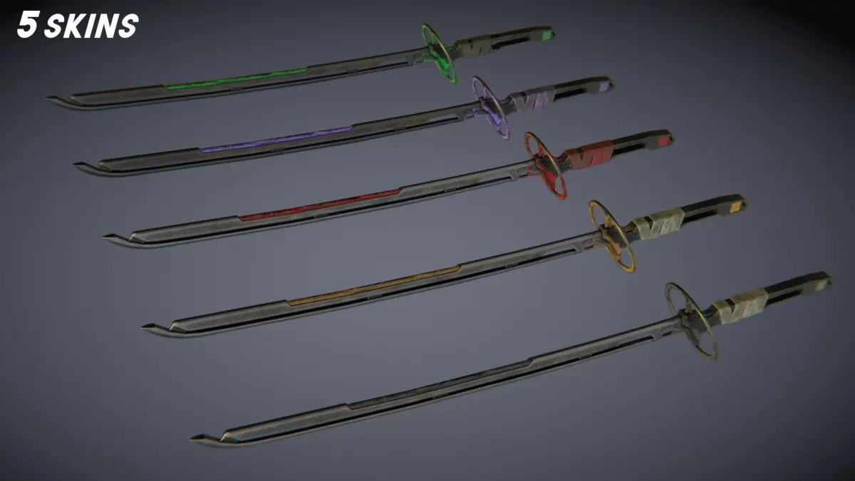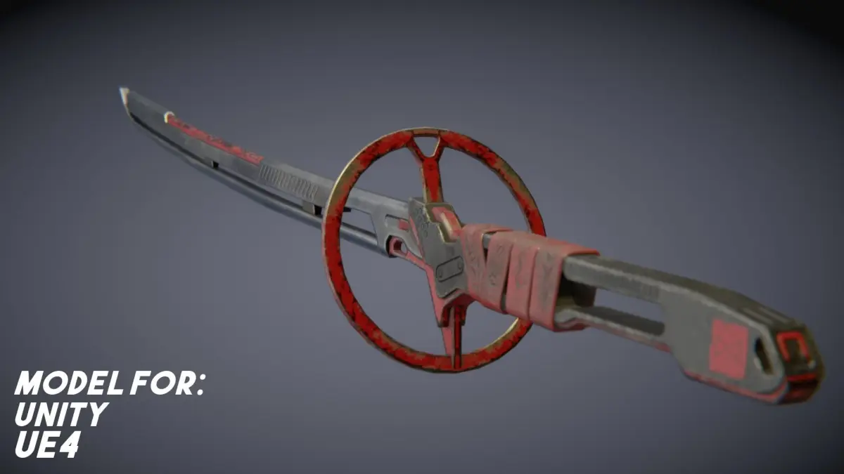 Katana is made in the style of SKI-FI or CUBERpunkThe katana model includes one 4k texture. The model also includes 5 sets of skins (black-red, black, white, yellow and purple). The model consists of 3,740 tris and 1,985 verticals. The model is ready to play (export to UE 4 and Unity)