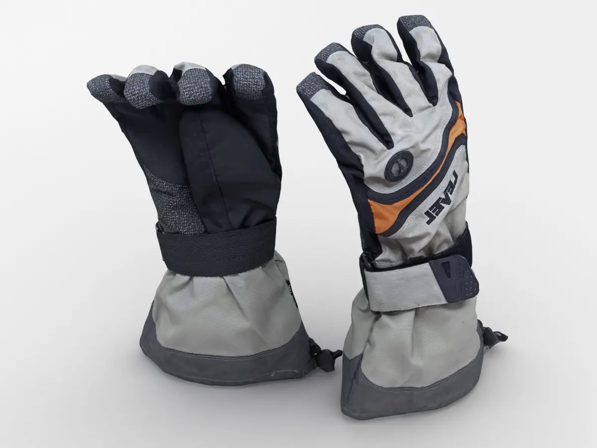 A DETAILED 3D MODEL OF A PAIR OF SKI / SNOW GLOVES;