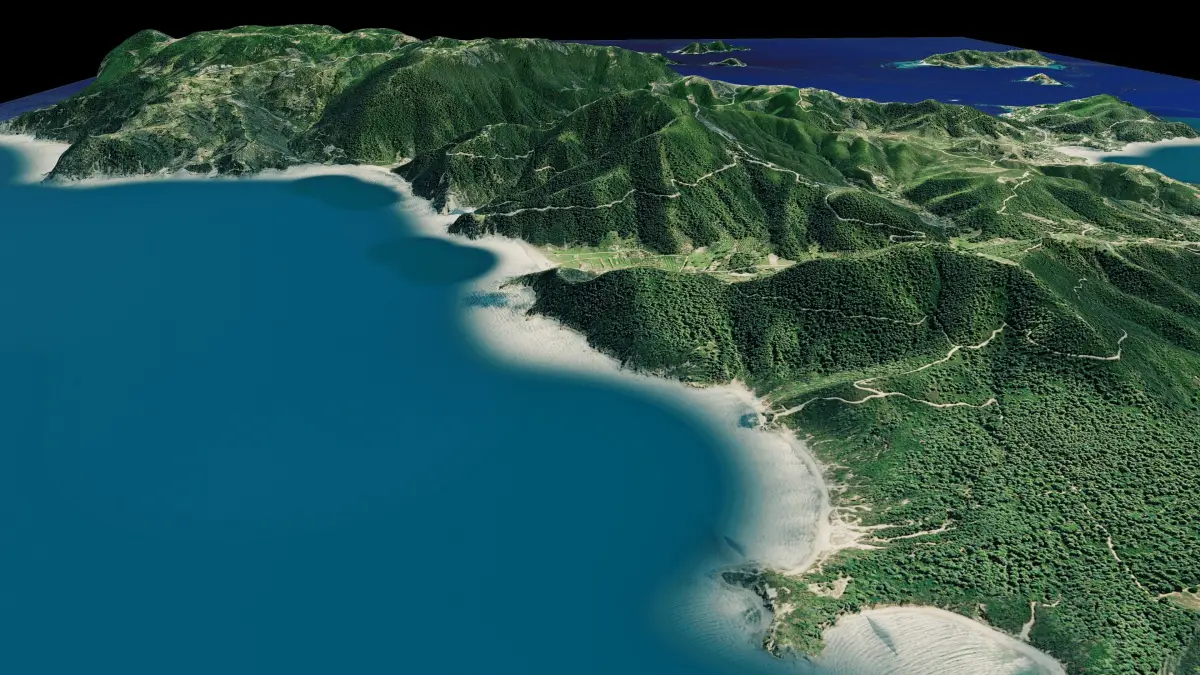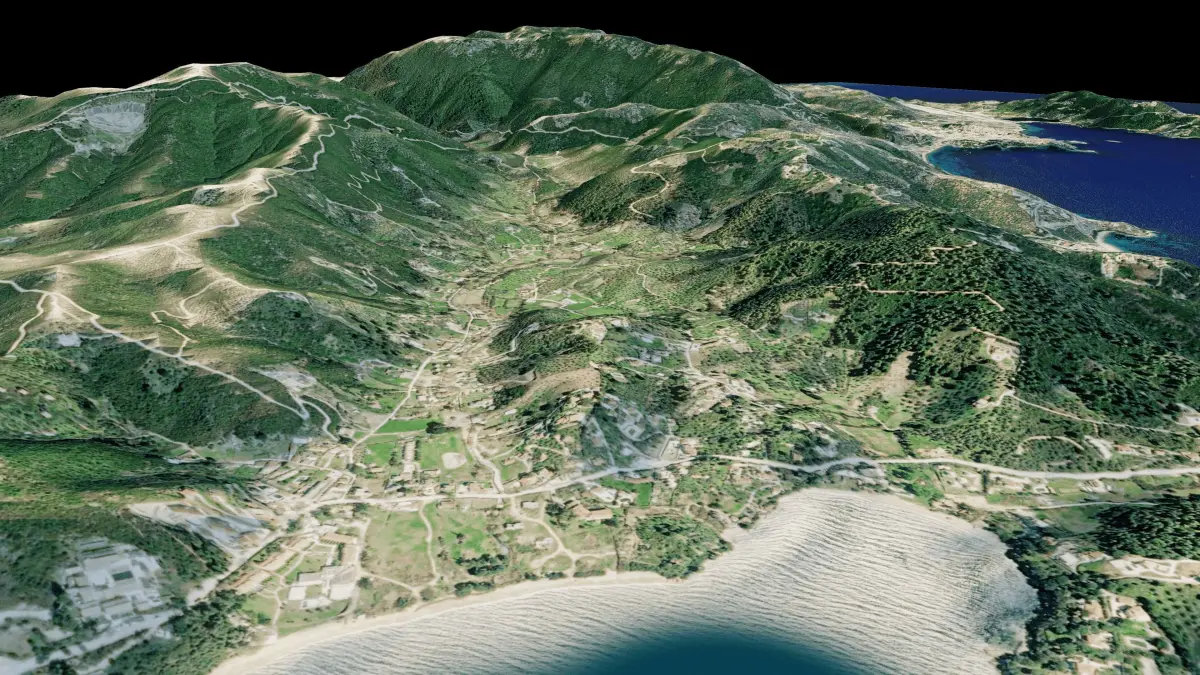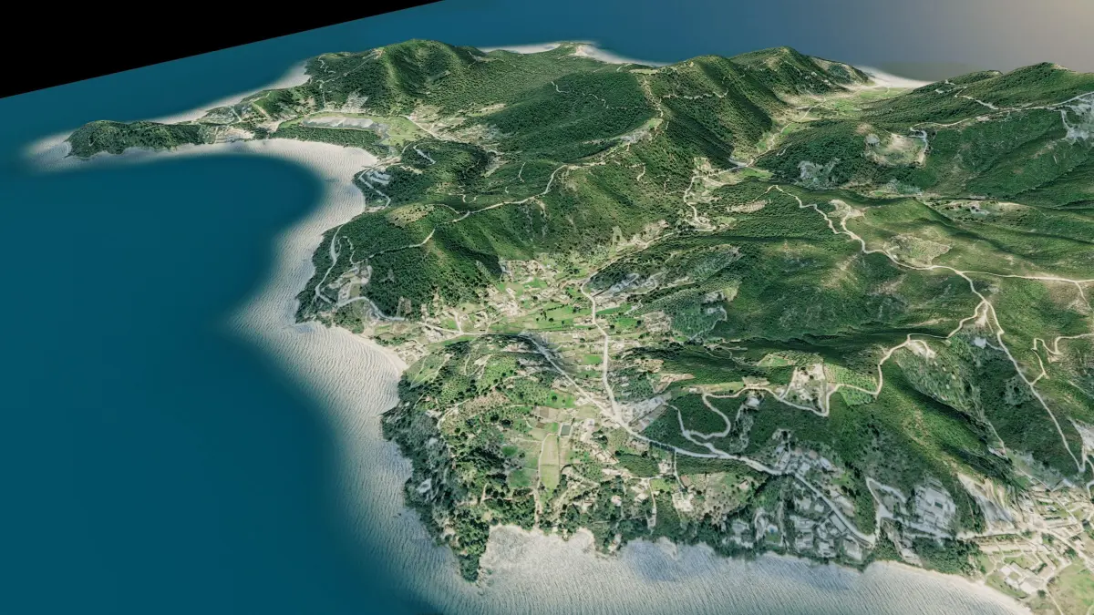 Skiathos island full 3d model terrain. 3d model of the Island of Skiathos with its landscape of mountains, beaches and forests