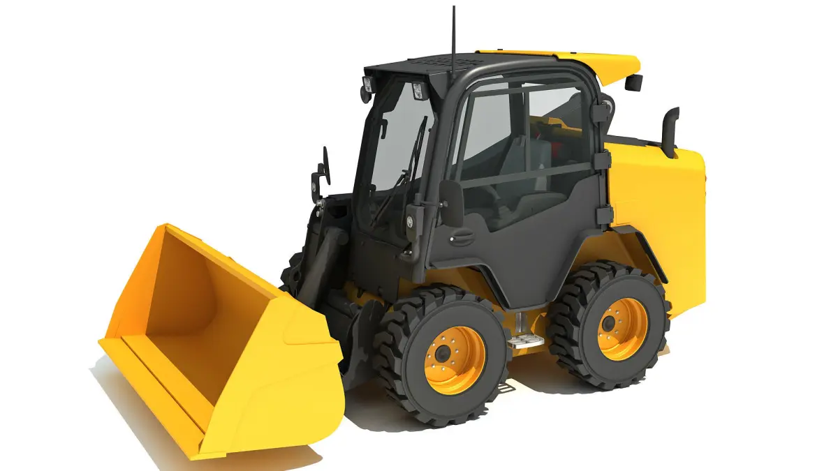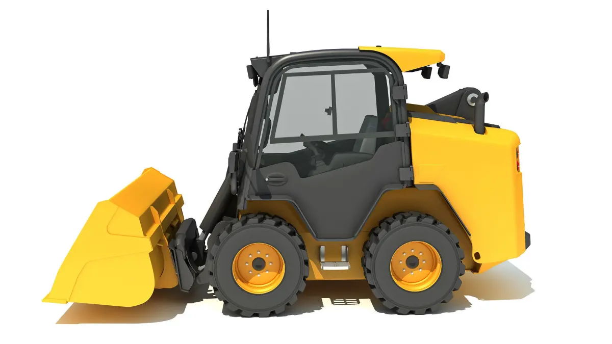 High quality 3d model of skid steer loader with shovel bucket.