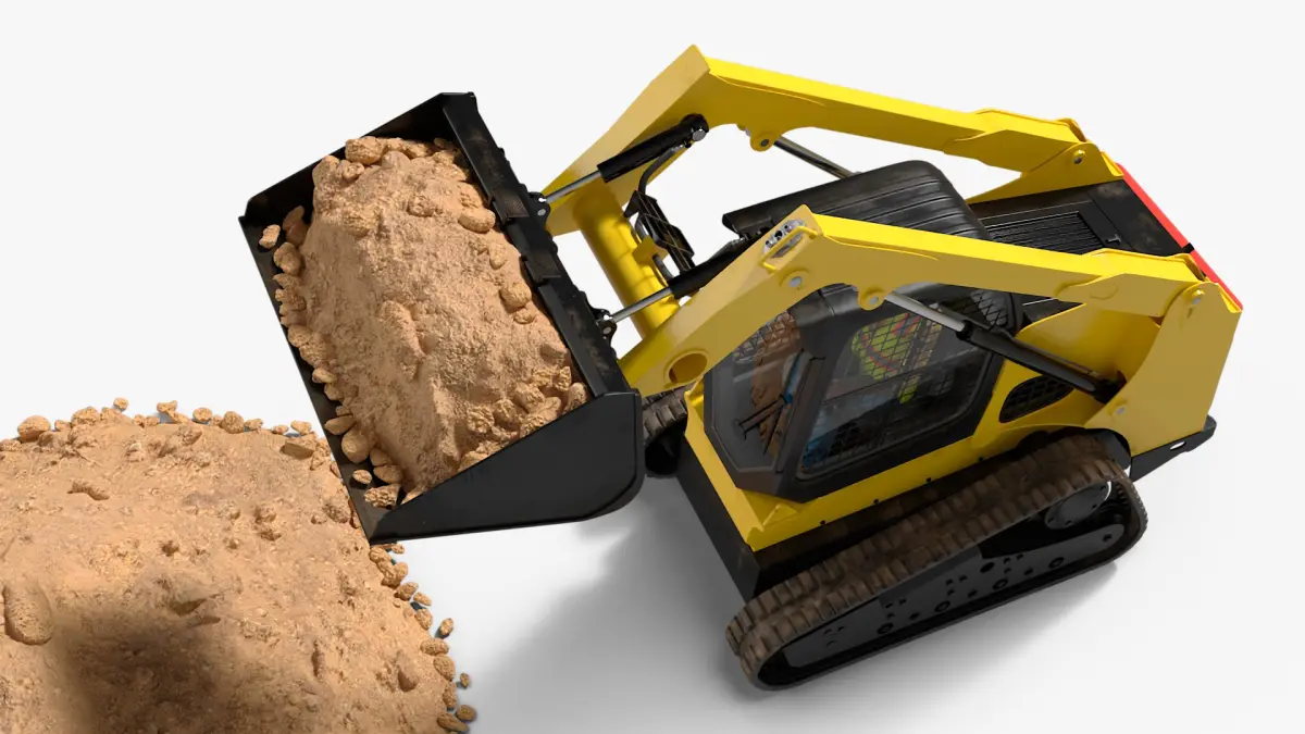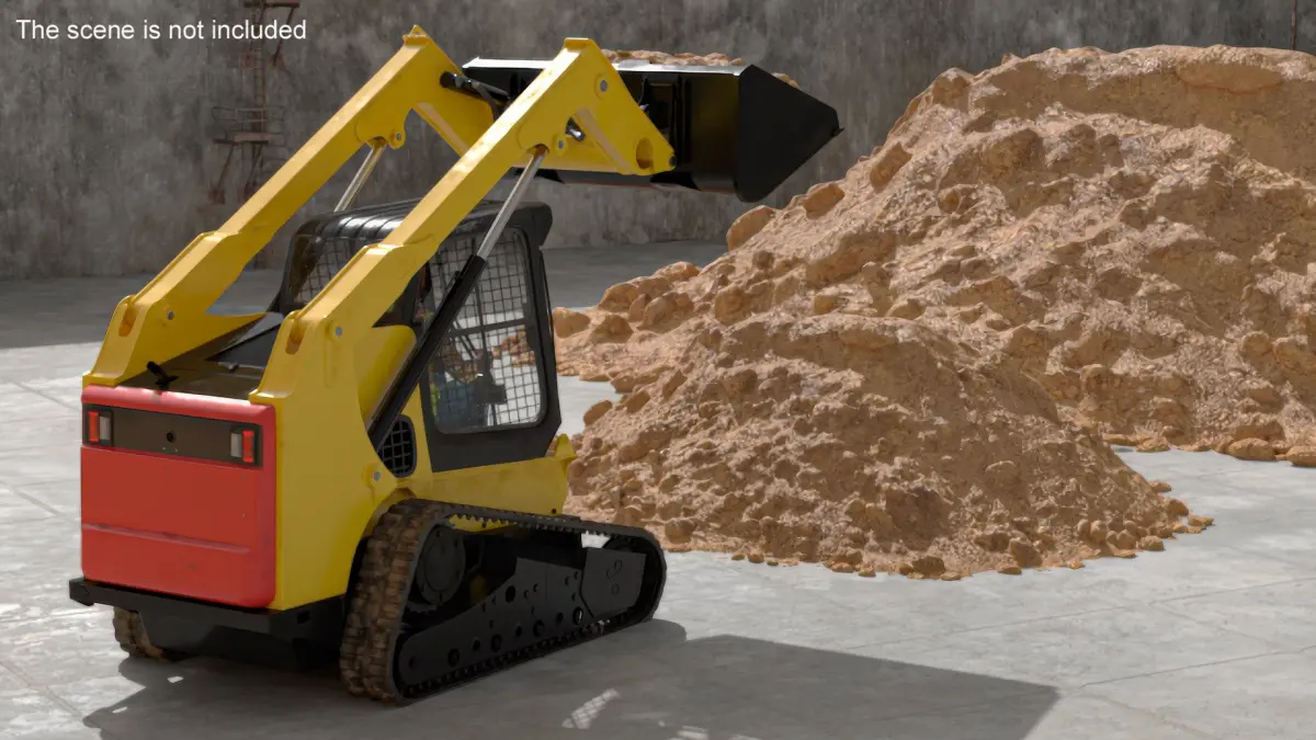 Skid Steer Loader with Operator and Sand Load is a three-dimensional model of compact track loader that is a versatile heavy duty machinery vehicle, that is widely used in construction and landscaping industries for a variety of tasks.