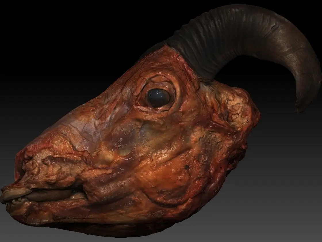 An high detail scan of a sheeps head that had been skinned for taxidermy purposes with large 4096 x 4096 and 8192 x 8192 texture maps.