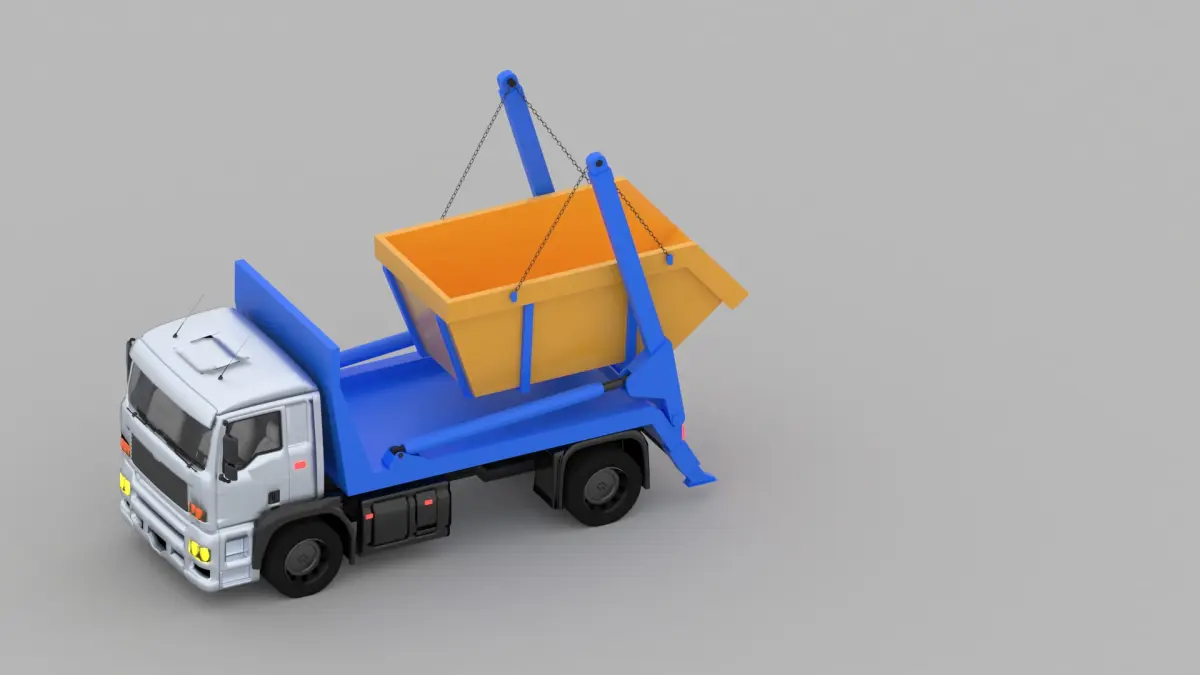 Skip loader trucks are used to place small containers in tight spaces. These systems are mainly used in the construction and waste processing industries. It is important for this type of container truck to be as short as possible to minimise the turning radius and maximise manoeuvrability. The 3D model illustrates how to plan the flow of waste at the projectXe tải bỏ thùng được sử dụng để đặt các thùng chứa nhỏ trong không gian chật hẹp. Các hệ thống này chủ yếu được sử dụng trong ngành xây dựng và xử lý chất thải. Điều quan trọng là loại xe container này phải càng ngắn càng tốt để giảm thiểu bán kính quay vòng và tối đa hóa khả năng cơ động. Mô hình 3D diễn họa cách hoạch động lên xuống chất thải ở dự án