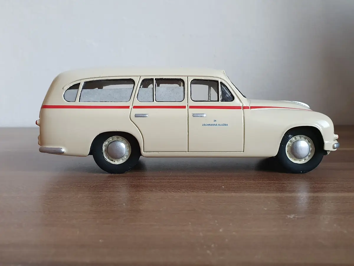 Another model from the Czechoslovak ambulance series. This time it's a Skoda 1200. The model was originally made upon request in 1/72 scale, but I decided to add an interior and make it also in 1/24 scale. The model consists of only 7 parts.