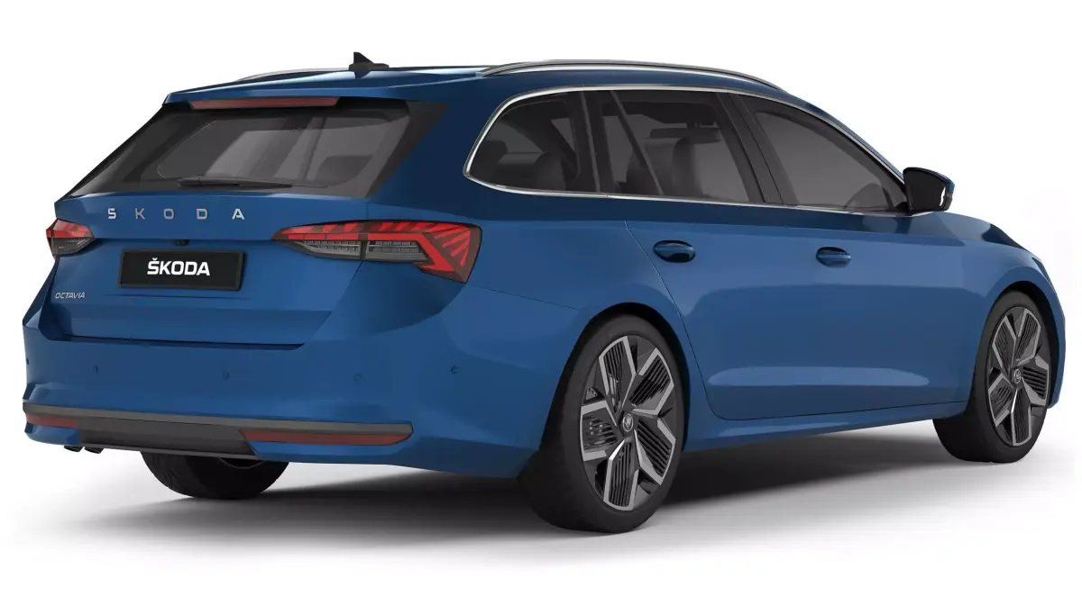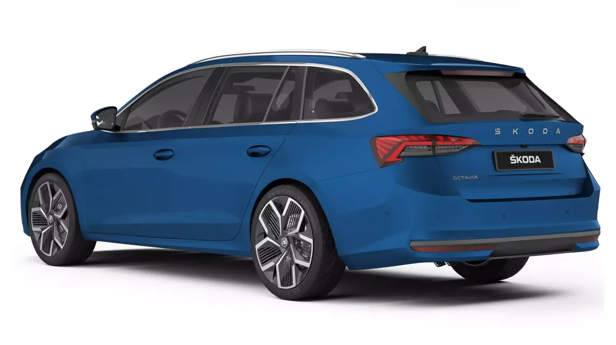 Škoda Octavia - five-door liftback. Fourth generation of the model, facelift. Body type is station wagon, combi. Main elements are prepared for TurboSmooth smoothing (2 Iteration). The bodywork and wheels have been refined. The interior is conditional.